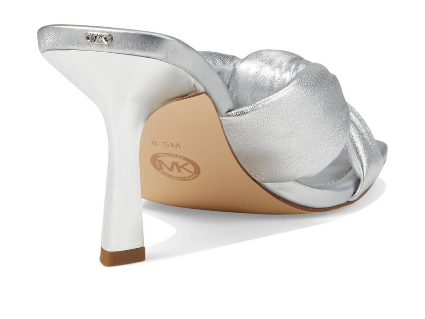Opt an effortless chic and clubbing look donning the MICHAEL Michael Kors® Elena Heeled Sandal. This open squared toe heel is designed with beautiful knot detailing on the vamp, brand detailing on the footbed, and leather upper. It has a padded footbed for an ideal comfort.