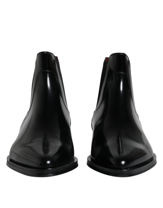 Dolce & Gabbana Black Leather Chelsea Men Ankle Boots Shoes
