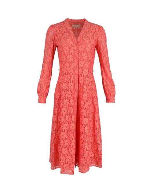 Michael Michael Kors Long Sleeve Midi Dress in Coral Cotton Lace