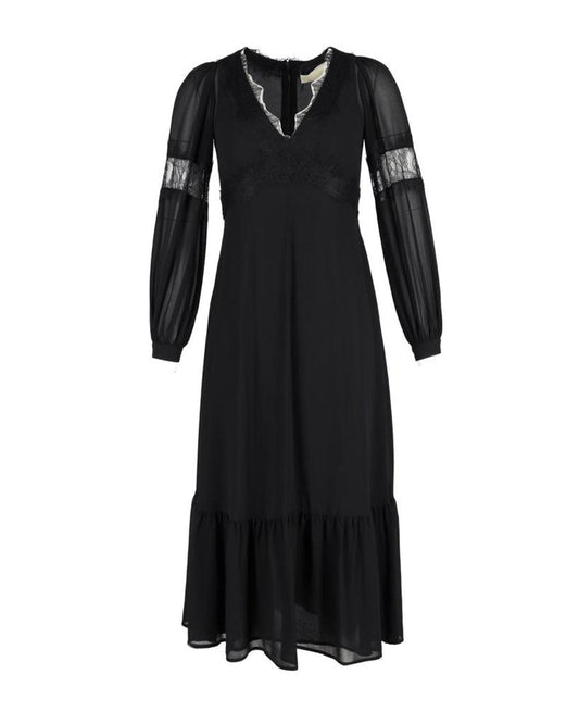 Michael Michael Kors Lace-Trimmed Midi Dress in Black Silk