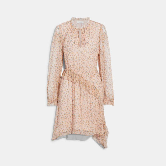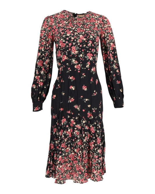 Michael Kors Ombre Floral Drop-Waist Dress in Black and Pink Silk