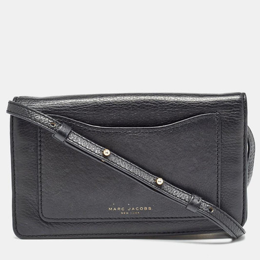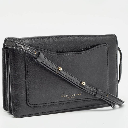 Marc Jacobs Black Leather Recruit Wallet On Strap