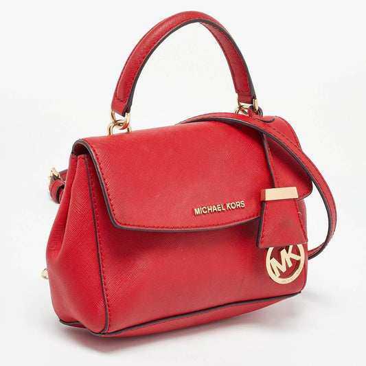 Michael Kors Red Leather Mini Ava Top Handle Bag