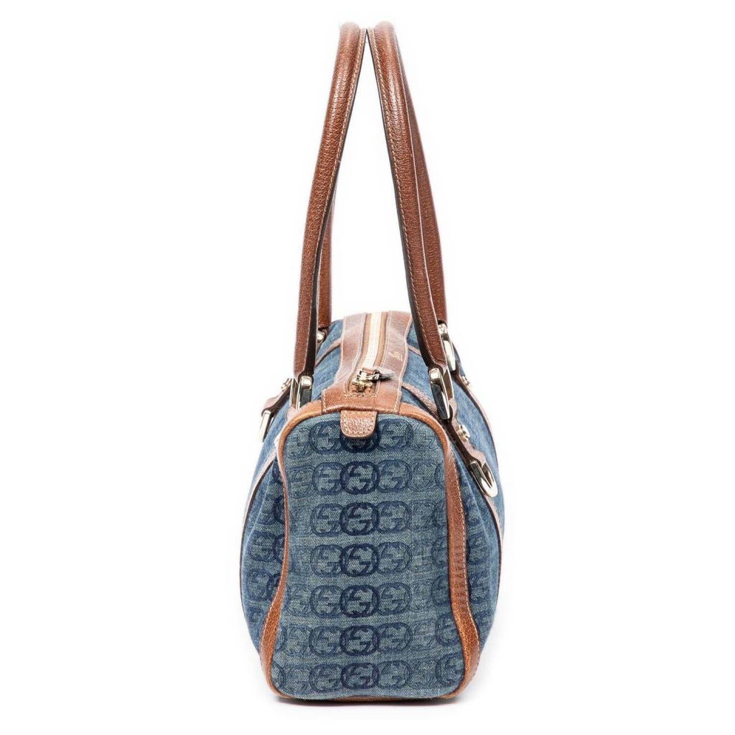 Gucci Handbag in Blue/Brown Interlocking GG Print Canvas and Gold hardware. Dimensions - 29*16*11cm. Serial number - 130942-1781. Inclusions - Dustbag.