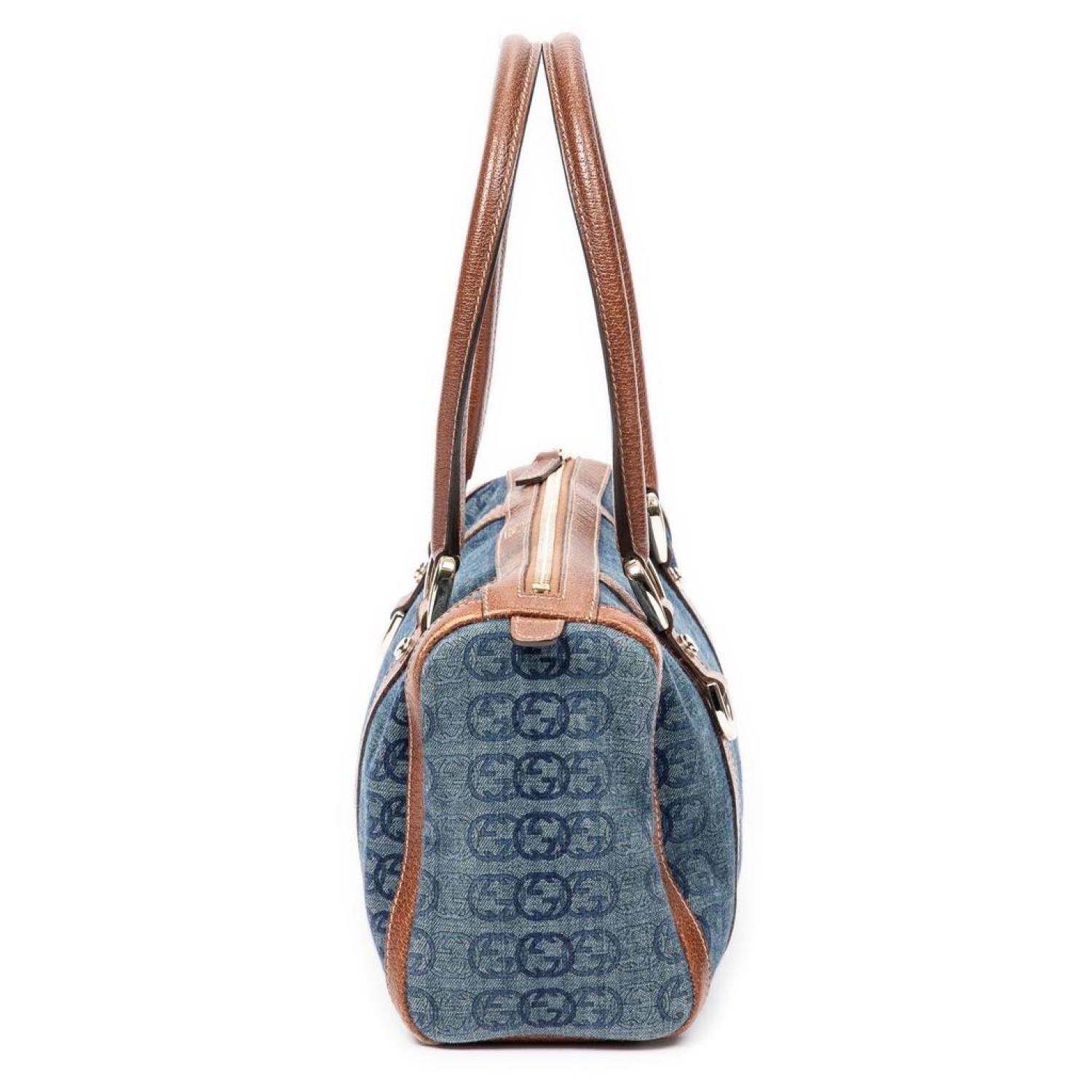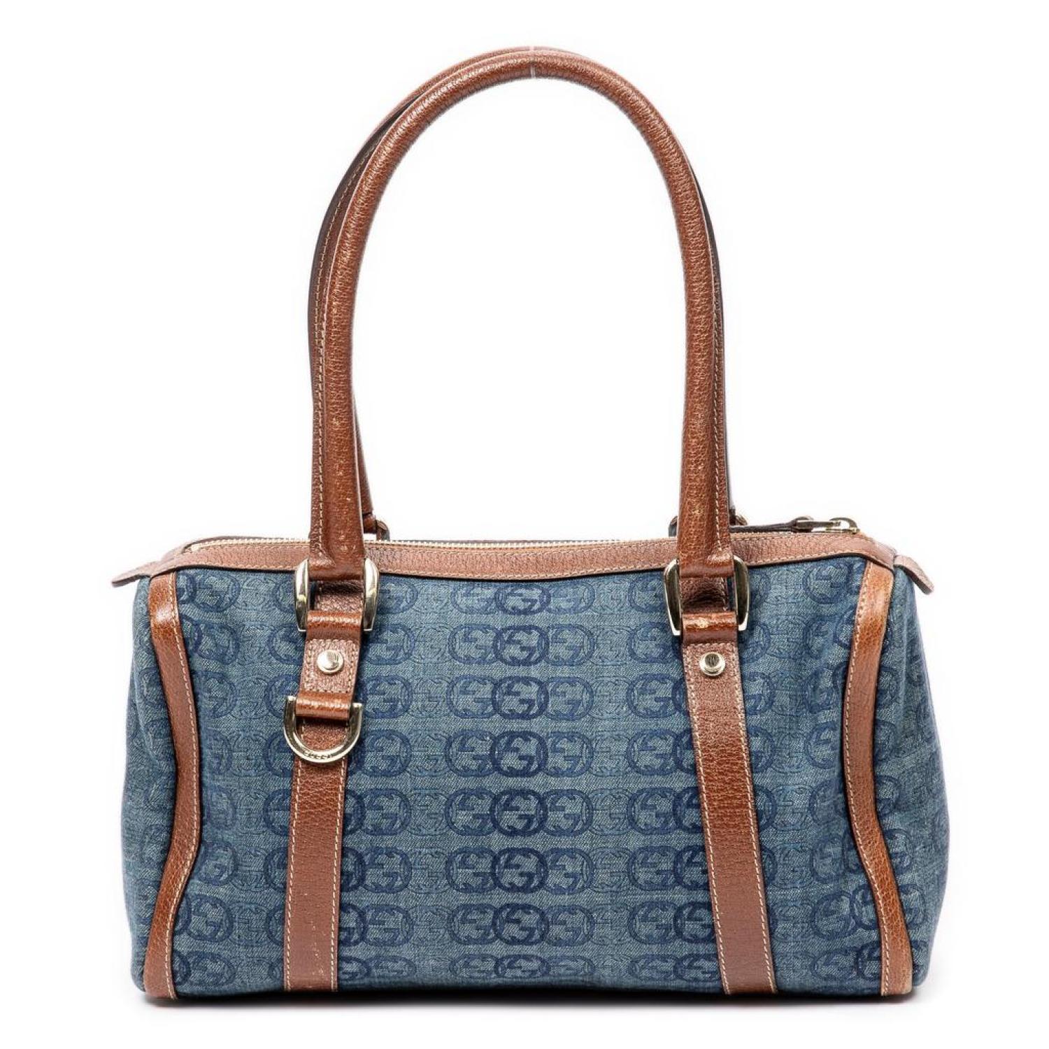 • Gucci Handbag in Blue/Brown Interlocking GG Print Canvas and Gold hardware. Dimensions - 29*16*11cm. Serial number - 130942-1781. Inclusions - Dustbag.