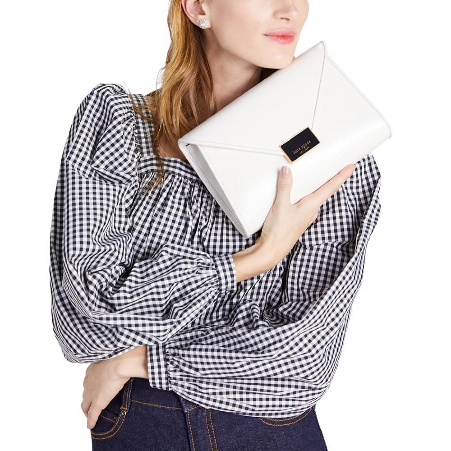 Clean lines with a structured silhouette, the Anna Shiny Textured Leather Small Envelope Clutch by kate spade new york keeps you organized in perfect style.