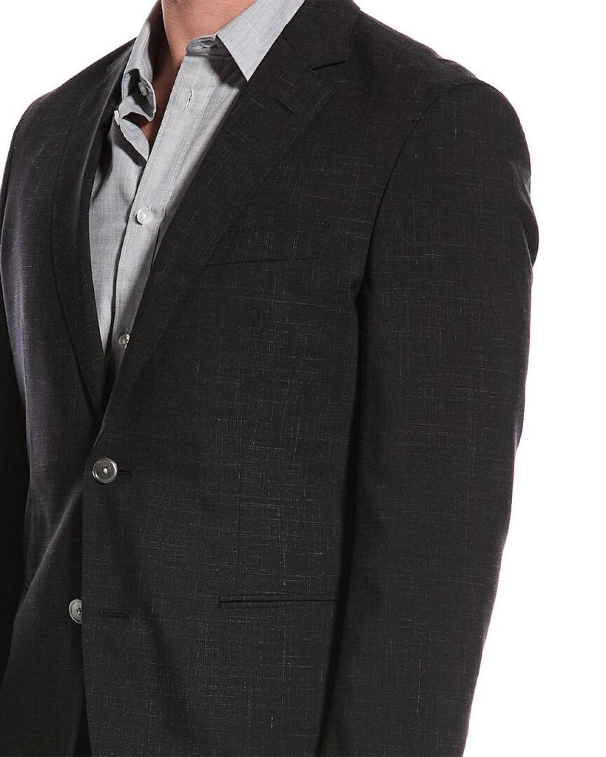Introducing the BOSS Hugo Boss 2pc Slim Fit Wool & Linen-Blend Suit, a masterpiece by the renowned brand Hugo Boss. Crafted with precision, this suit exudes sophistication and elegance, making it the perfect addition to any gentleman's wardrobe. The jacket of this suit features a sleek black color, which adds a touch of timeless class. Its slim fit design ensures a modern and polished silhouette. With approximately 30 inches from shoulder to hem, it offers a flattering and versatile length. The notch lapel, left chest pocket, two front pockets, interior pockets, and side vents at the back hem showcase the attention to detail and high-quality craftsmanship employed in its creation.Equipped with a two-button closure, the jacket provides a secure and comfortable fit, ensuring you look your best throughout the day. The pant is meticulously designed with belt loops and four-pocket styling, blending functionality and style seamlessly. The zip fly with hook-and-bar closure allows for easy and hassle-free wear. The unfinished hem makes tailoring a breeze, ensuring a customized fit that is perfect for you.This suit is modeled in Size 40R by a gentleman who is 6'1.5. Please note that measurements may vary slightly by size, allowing for a personalized fit that suits your specific body type.Crafted with a combination of 94% virgin wool and 6% linen, this suit offers a luxurious and refined feel. Its lining is made from 100% viscose, providing superior comfort throughout the day. For maintenance, dry cleaning is recommended to preserve the suit's quality and longevity. Imported with expertise, this suit is a testament to the brand's commitment to delivering exceptional and refined designs to discerning customers. Elevate your style and make a lasting impression with the BOSS Hugo Boss 2pc Slim Fit Wool & Linen-Blend Suit.