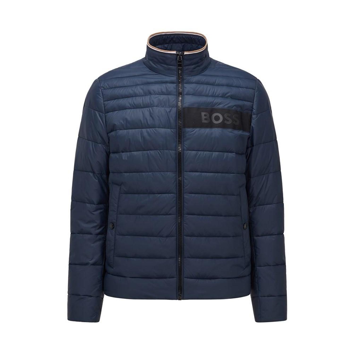 A regular-fit jacket with a water-repellent finish by BOSS menswear. Featuring lightweight wadding and contrast lining. Detailed with 3D logo tape at the chest and an inner knit collar with signature stripe. Regular fit Stand collar Zip closure Fully lined The model is a size 38R and is 6'1" tall with a, 37" chest, 30" waist and 37" hips Polyamide (100% Recycled), Polyester Wipe Clean Imported