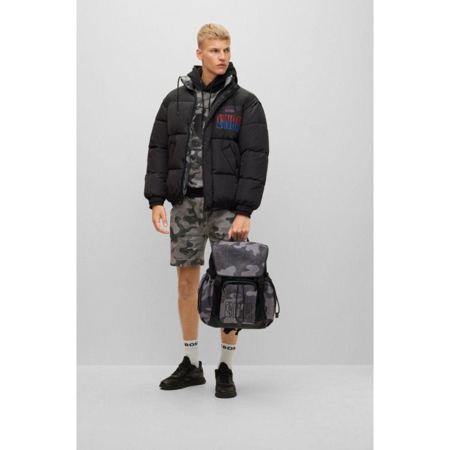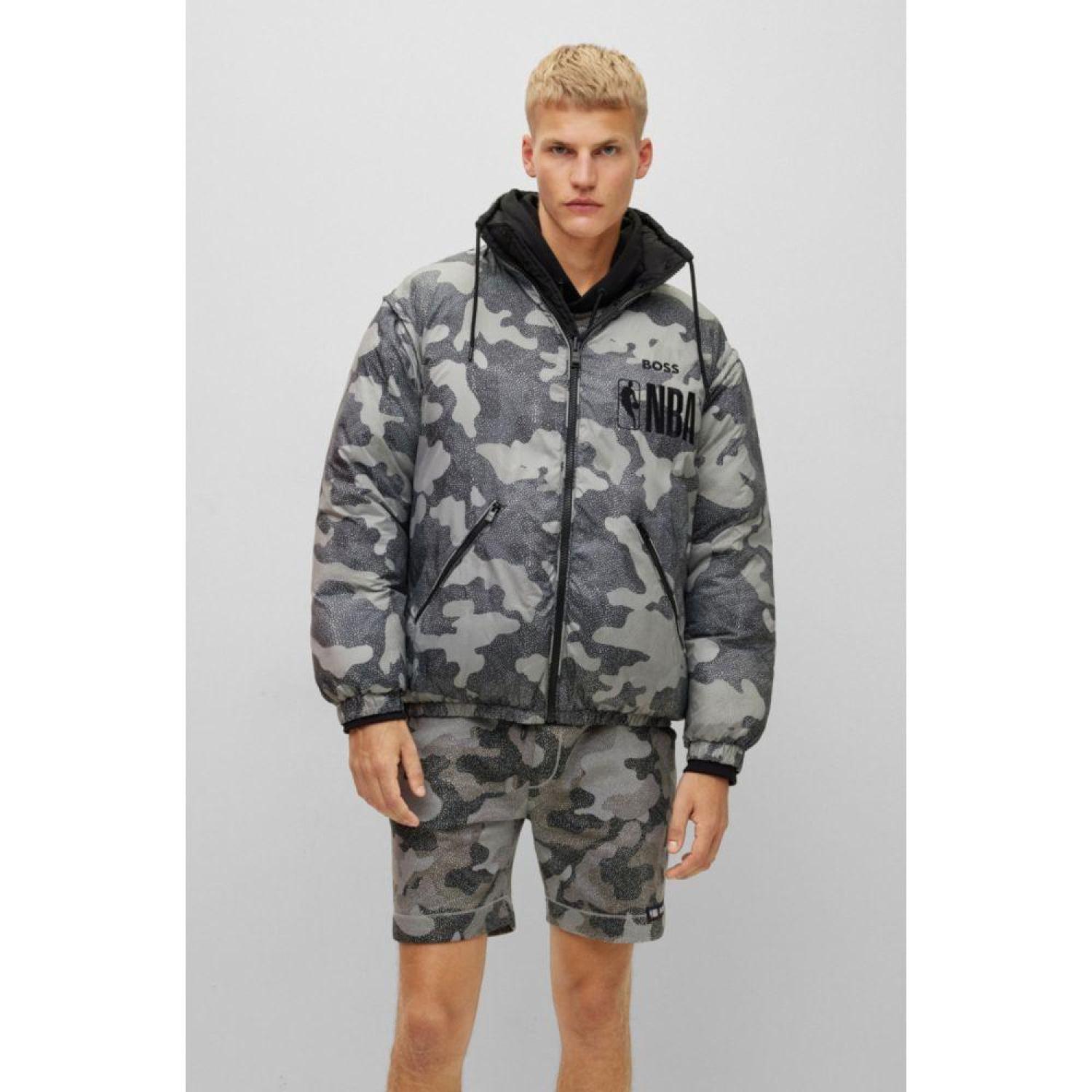 • An oversize-fit puffer jacket with a water-repellent finish by BOSS Menswear. Offering the choice of a plain or basketball-camouflage design, this reversible jacket has detachable sleeves for even further versatility. Embroidered branding and special labeling add exclusive touches at each side.Co-branded dynamic casualwear part of a limited-edition capsule collection in collaboration with the NBA.