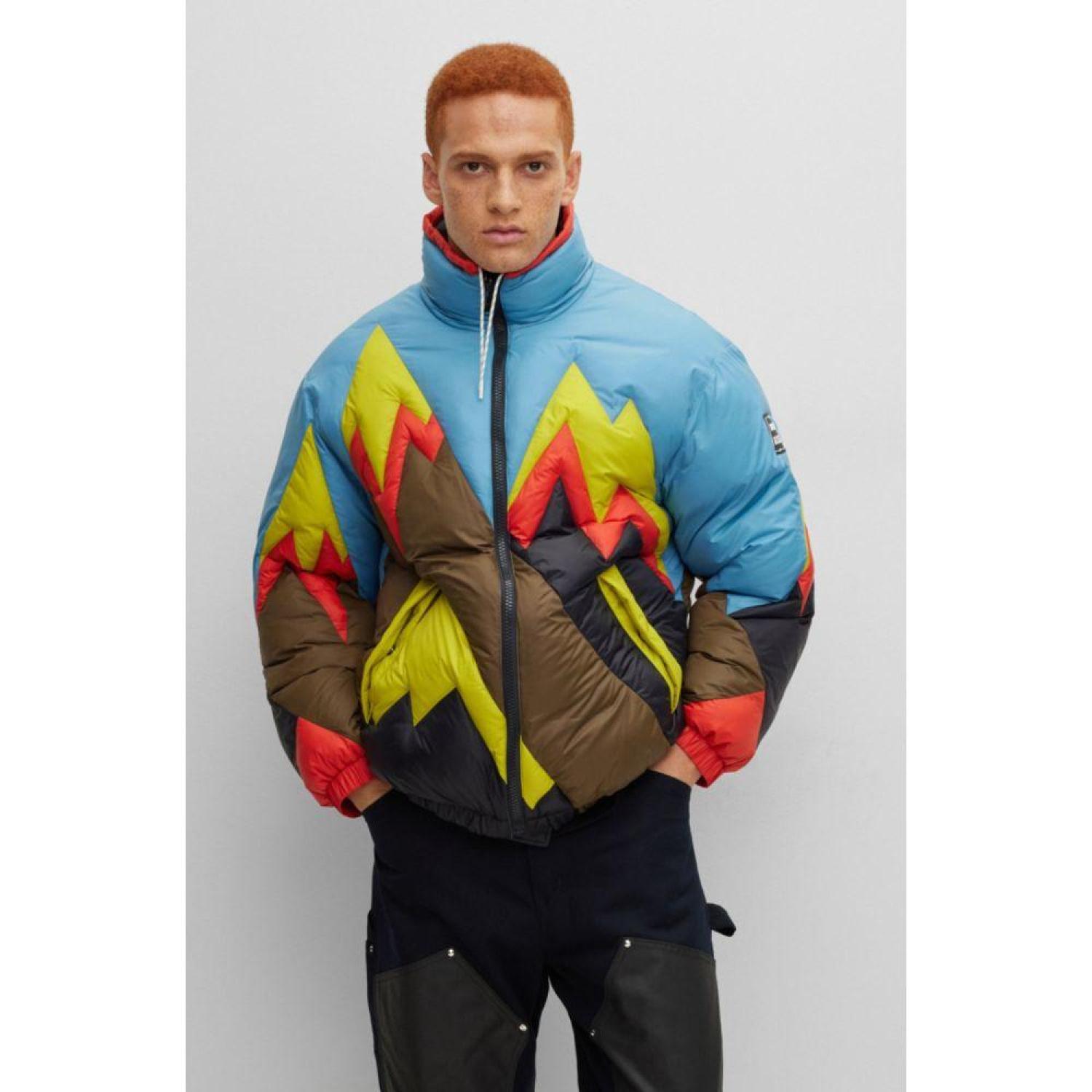 BOSS and PHIPPS unite their creative mindsets to find inventive ways to save resources. This unique partnership shines light on more responsible materials as well as styles using surplus garments and fabrics as their base. The resulting collection breaks new aesthetic ground through bold fusions, powerful prints, and original approaches to craft.A contemporary jacket by BOSS Menswear.Detailed all over with a high-impact pattern, this lightweight jacket is crafted in soft fabric treated with a water-repellent finish. This statement design is finished off with side pockets and a front zip.