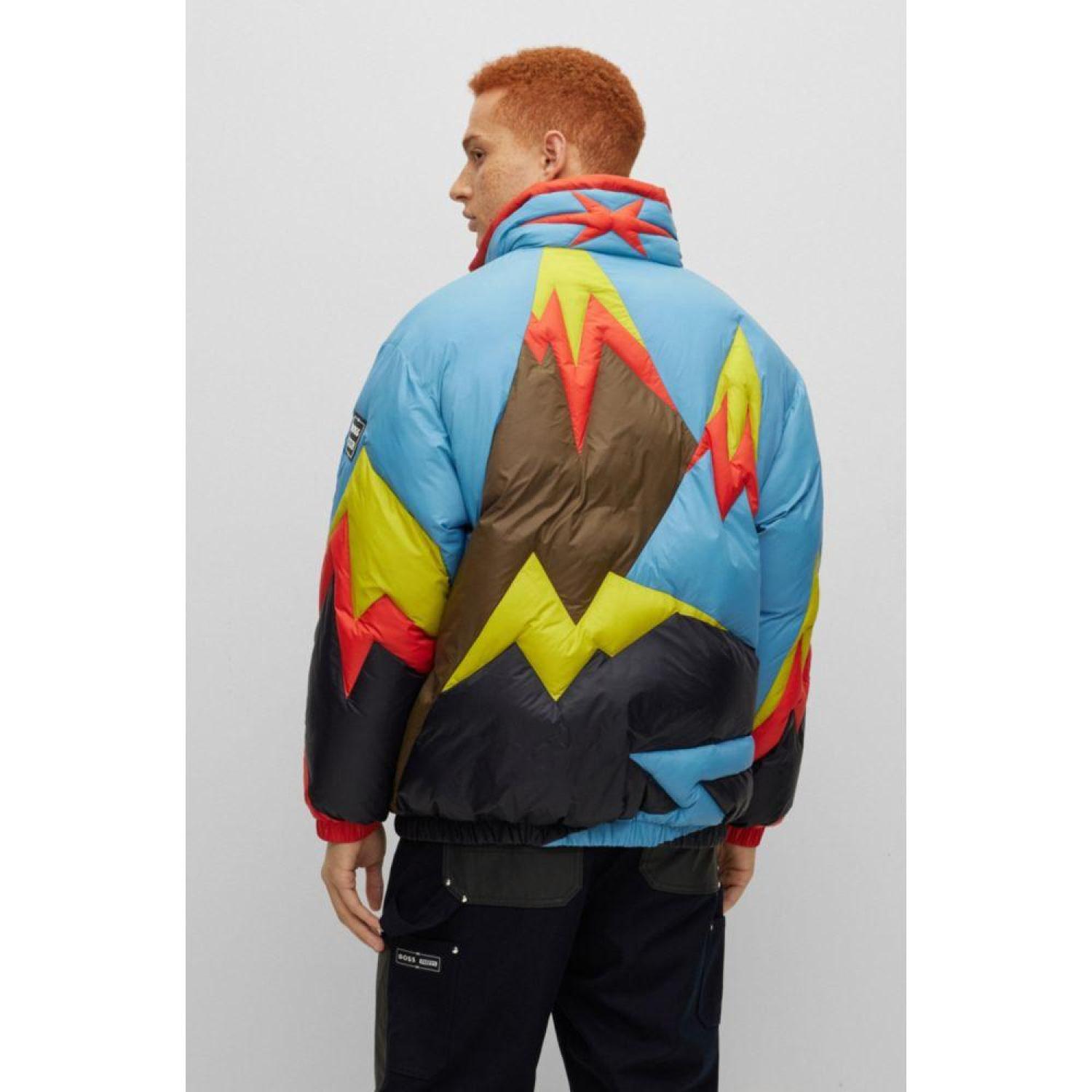 • BOSS and PHIPPS unite their creative mindsets to find inventive ways to save resources. This unique partnership shines light on more responsible materials as well as styles using surplus garments and fabrics as their base. The resulting collection breaks new aesthetic ground through bold fusions, powerful prints, and original approaches to craft.A contemporary jacket by BOSS Menswear.Detailed all over with a high-impact pattern, this lightweight jacket is crafted in soft fabric treated with a water-repellent finish. This statement design is finished off with side pockets and a front zip.