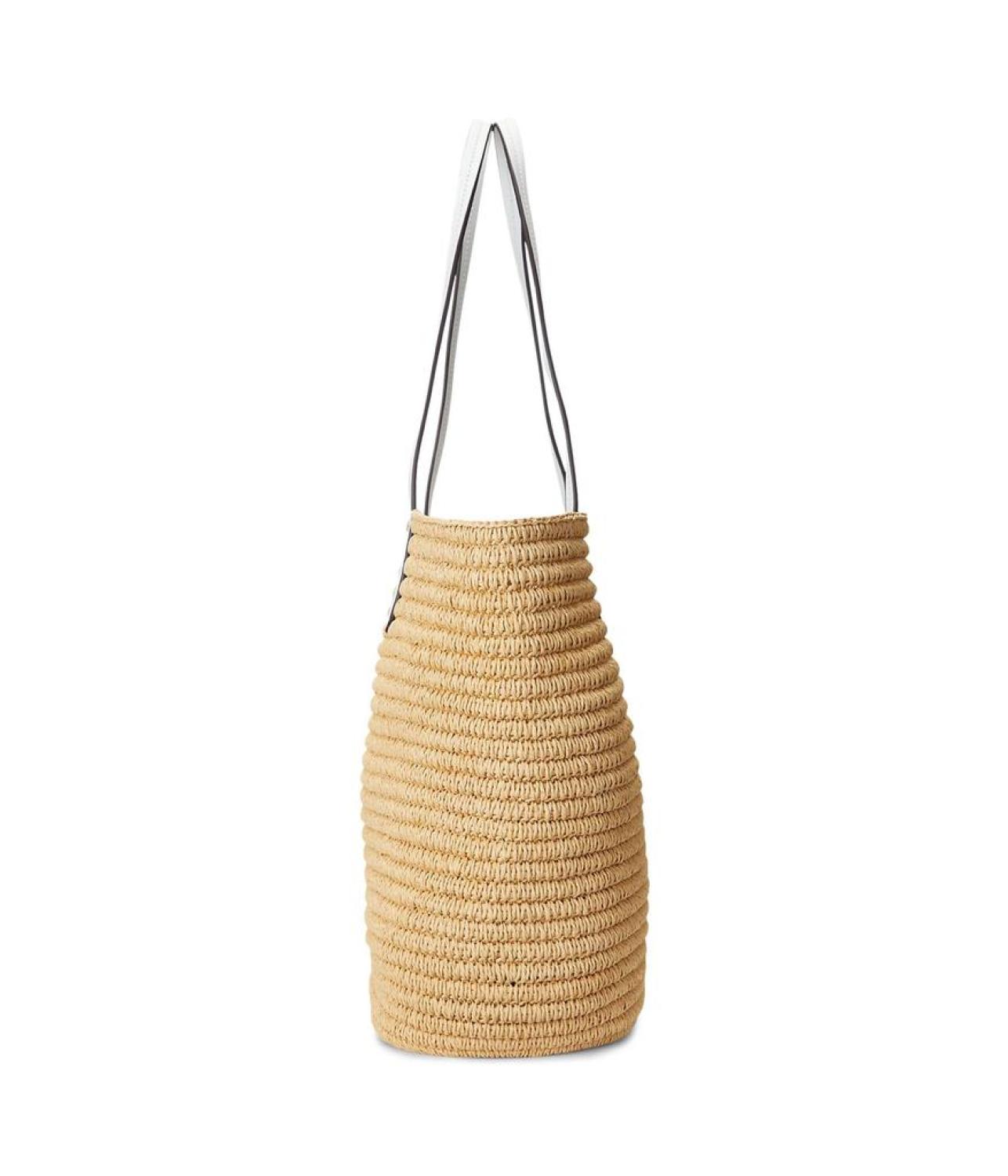• The LAUREN Ralph Lauren® Brie Leather-Trim Straw Medium Tote Bag is spacious enough to carry all of your essentials.