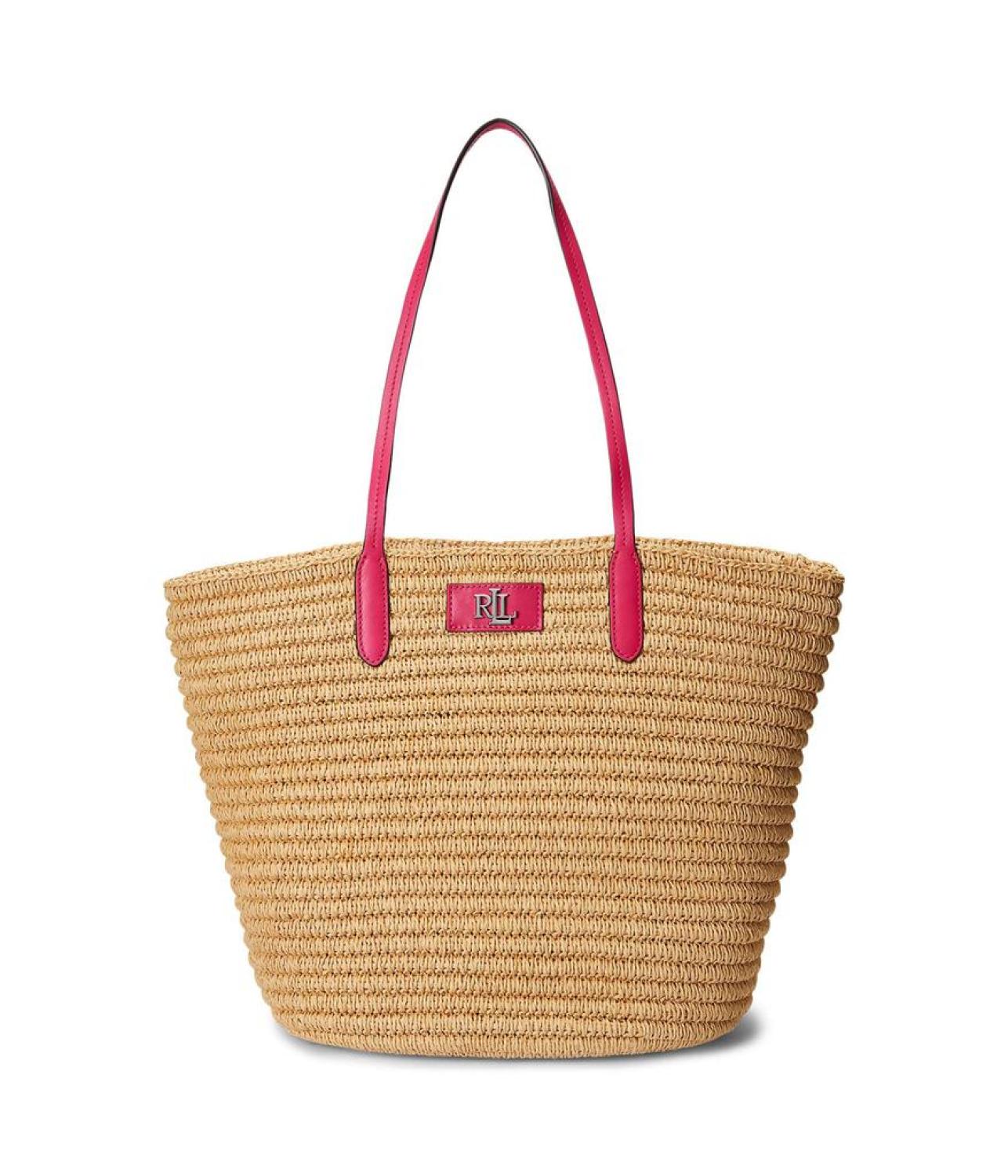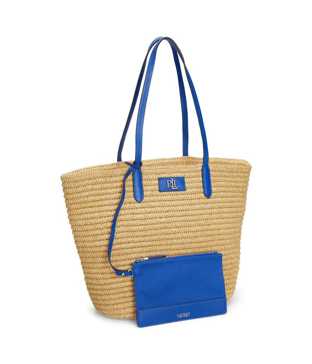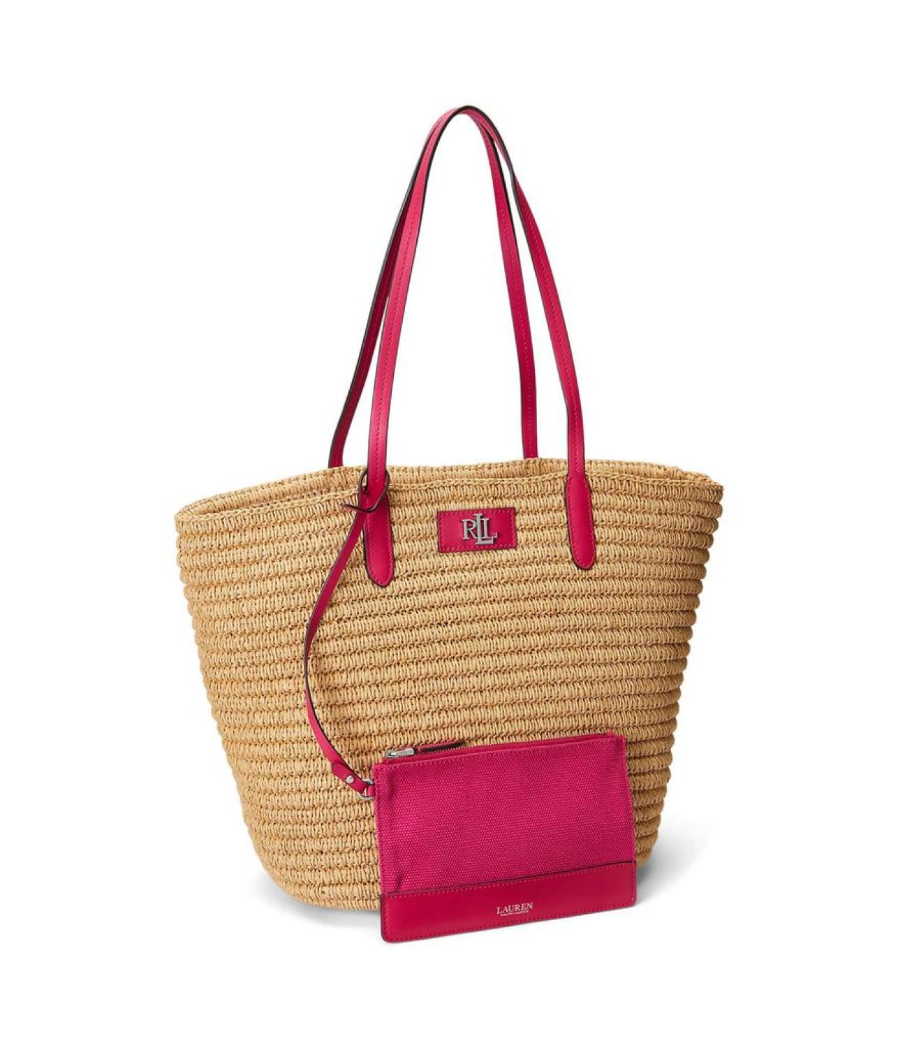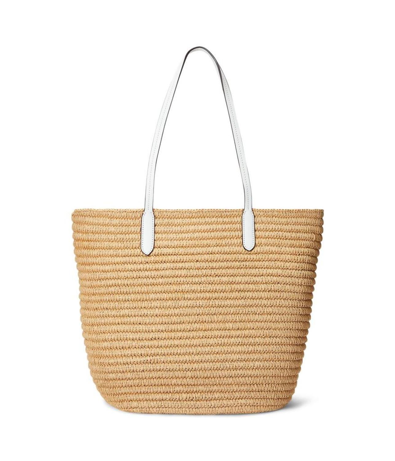 The LAUREN Ralph Lauren® Brie Leather-Trim Straw Medium Tote Bag is spacious enough to carry all of your essentials.