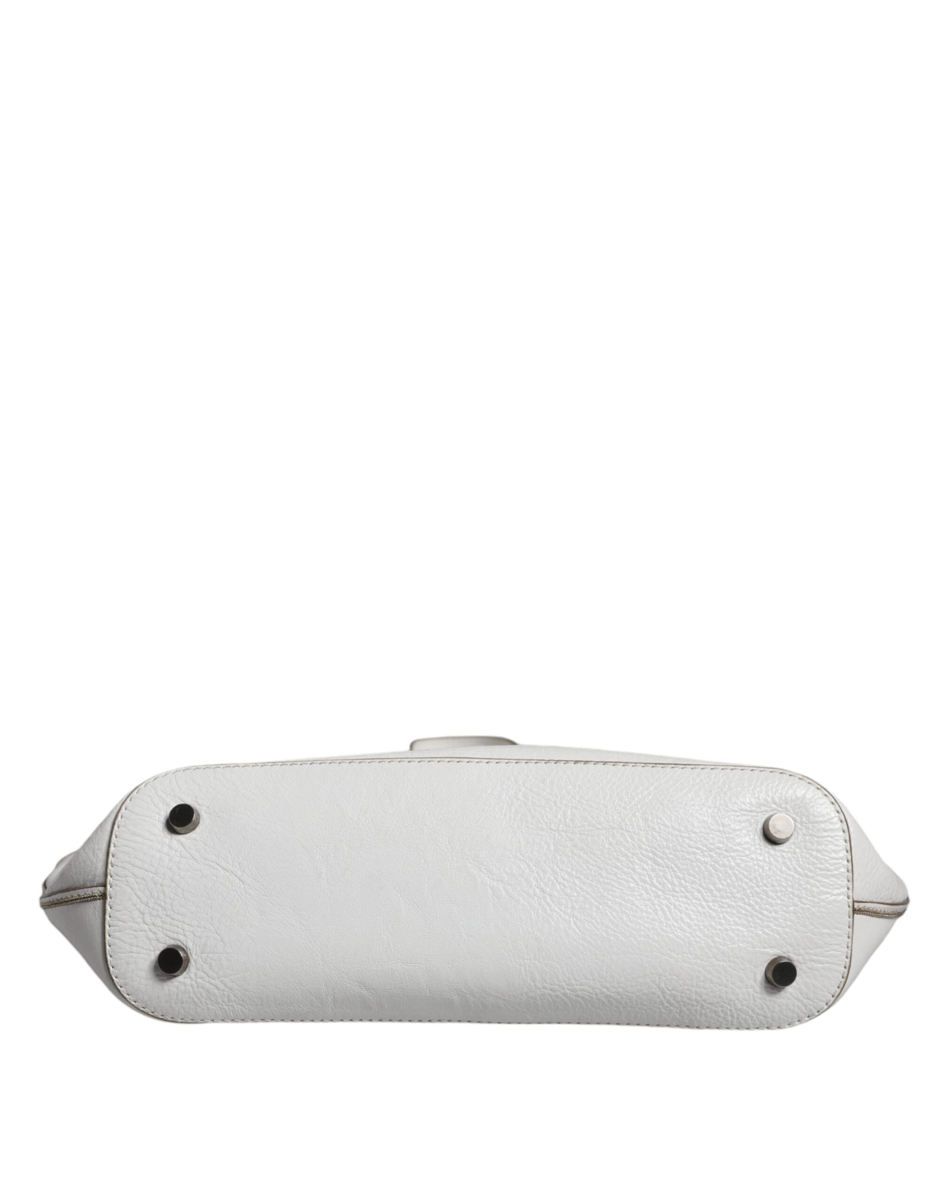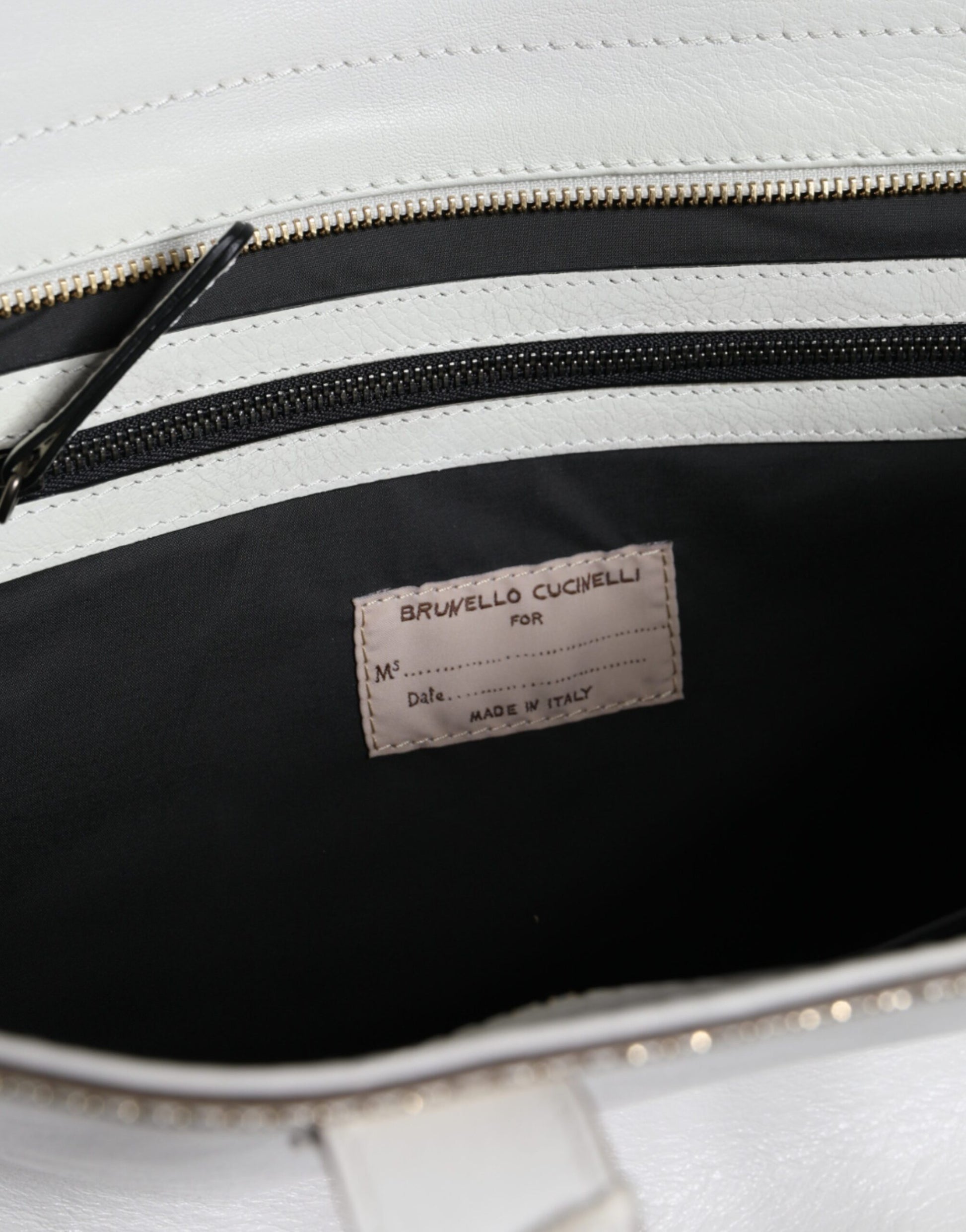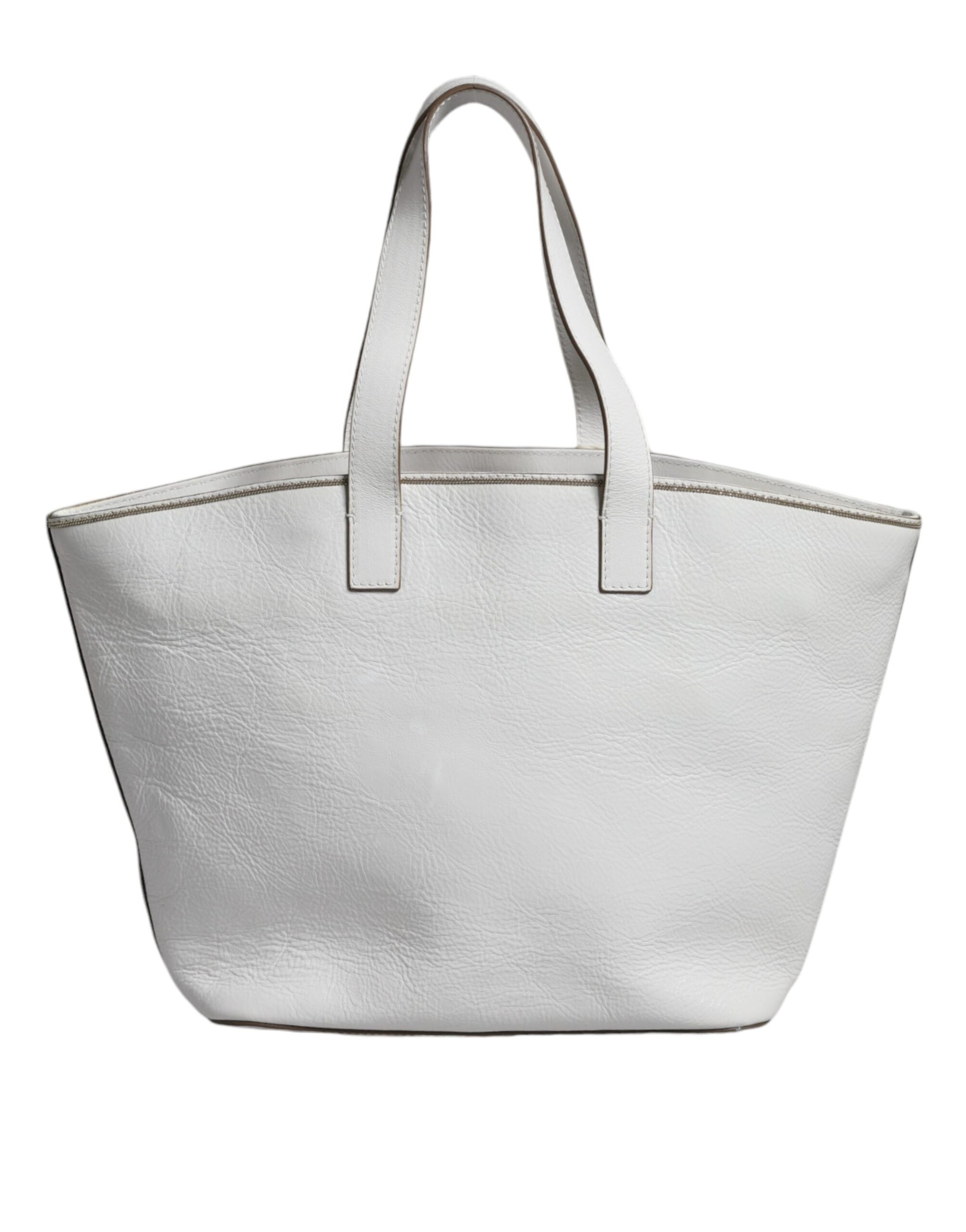 Brunello Cucinelli White Leather Logo Shoulder Strap Shopping Tote Bag