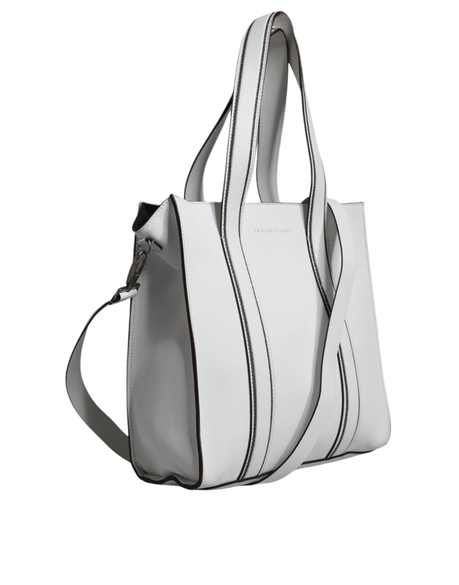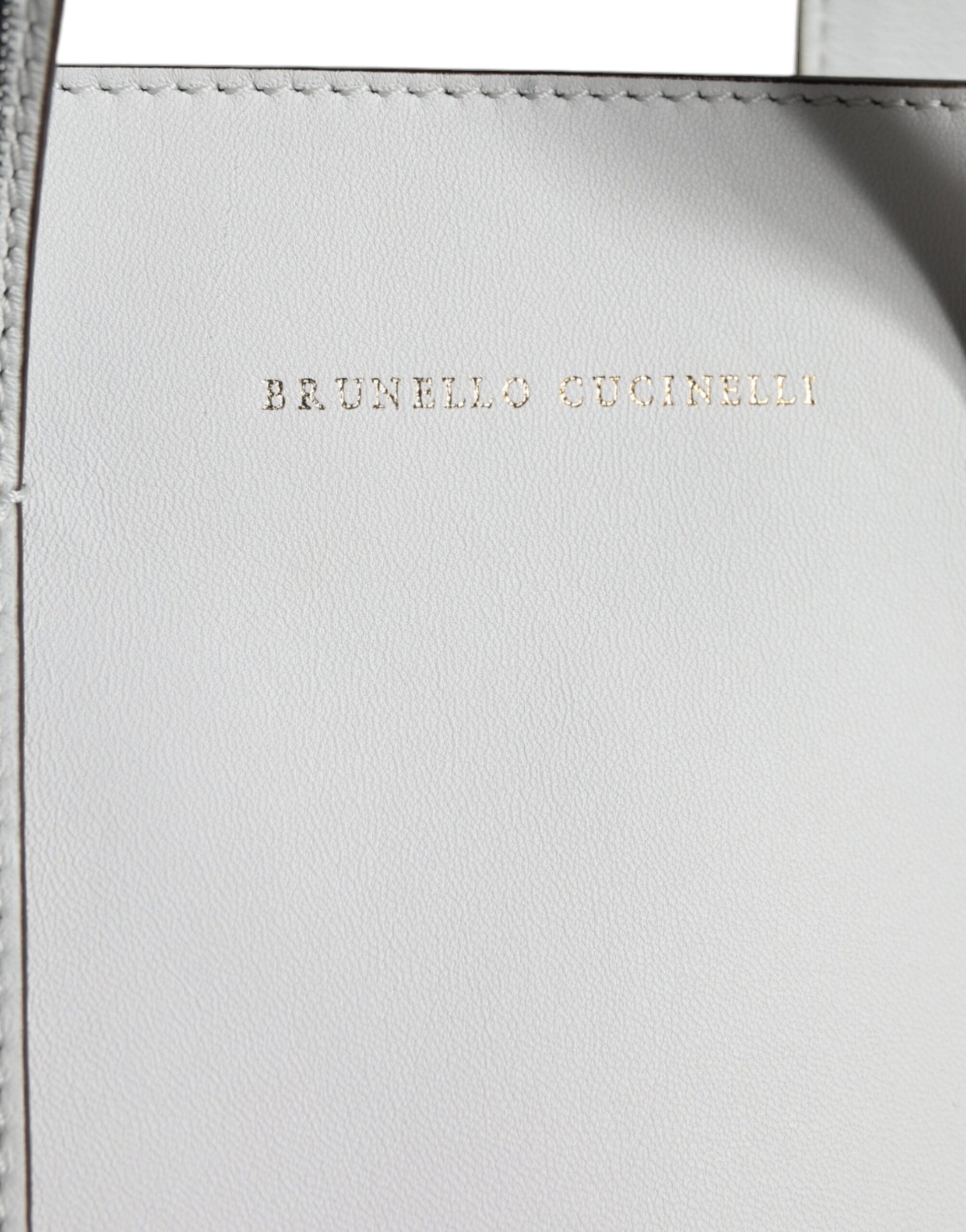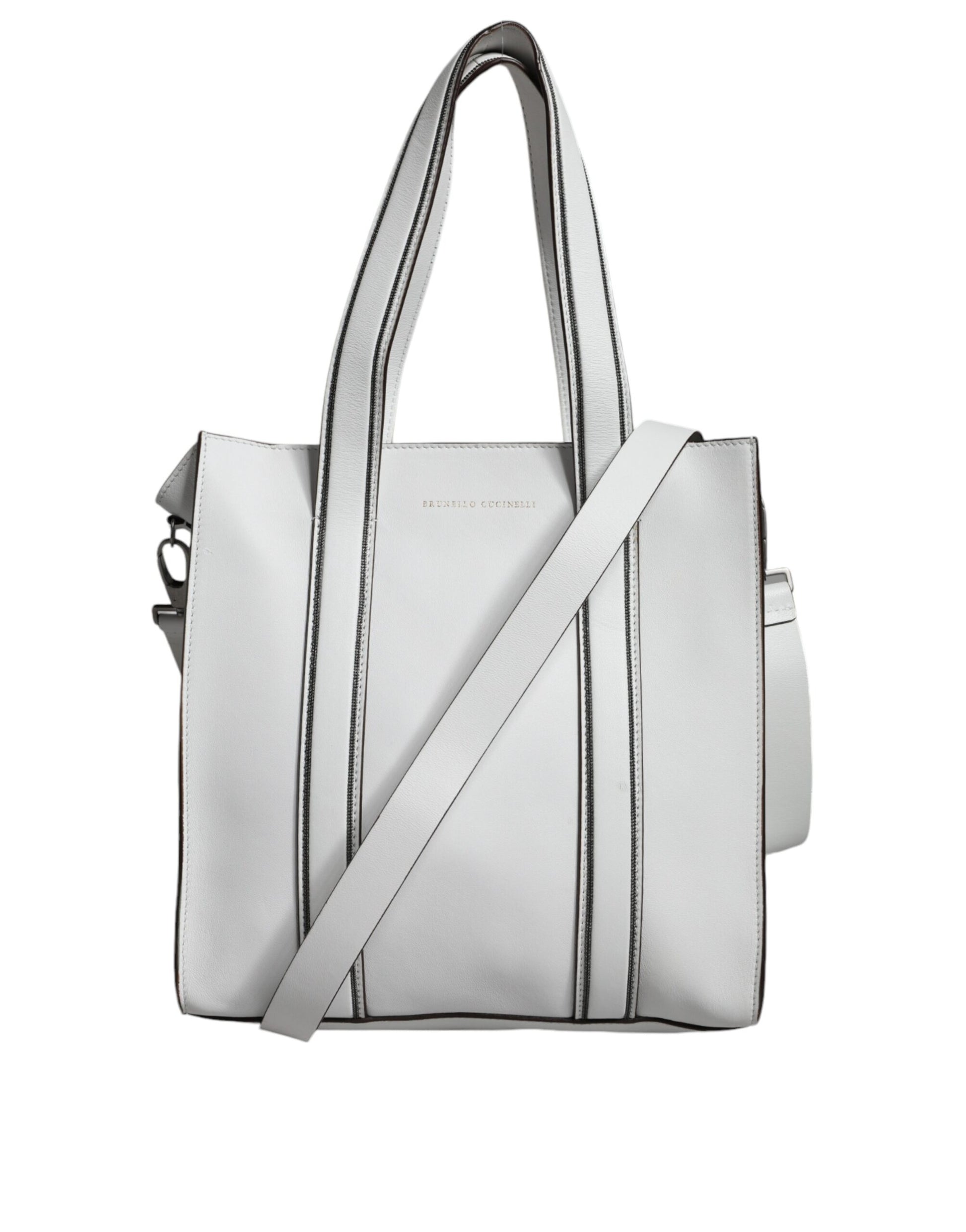 Brunello Cucinelli White Leather Logo Shoulder Strap Shopping Tote Bag