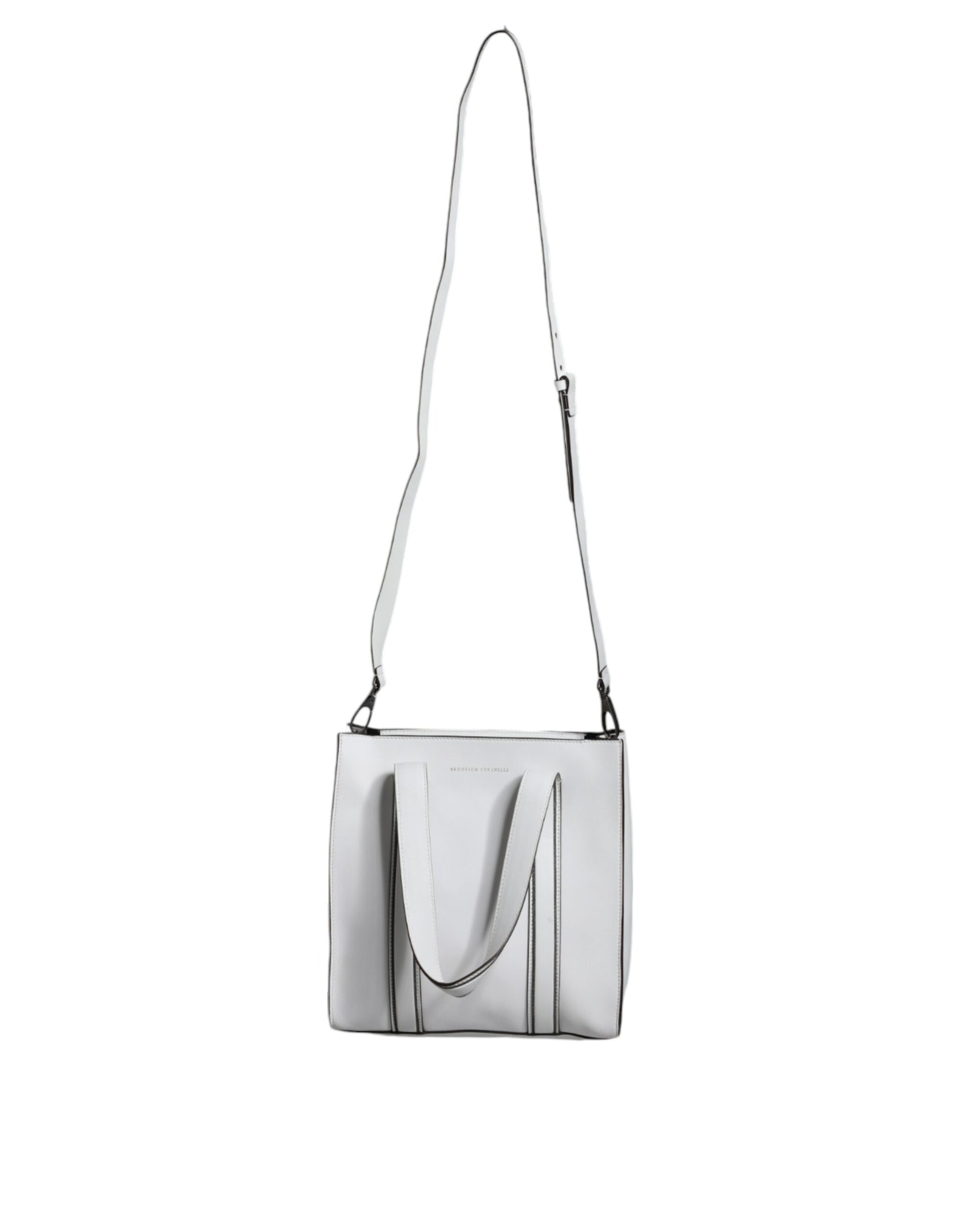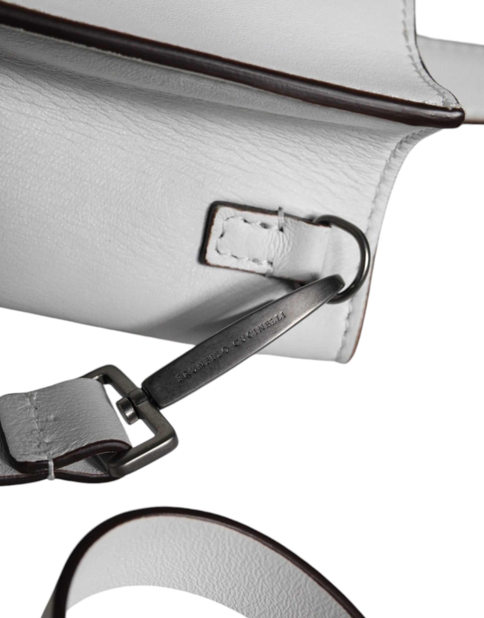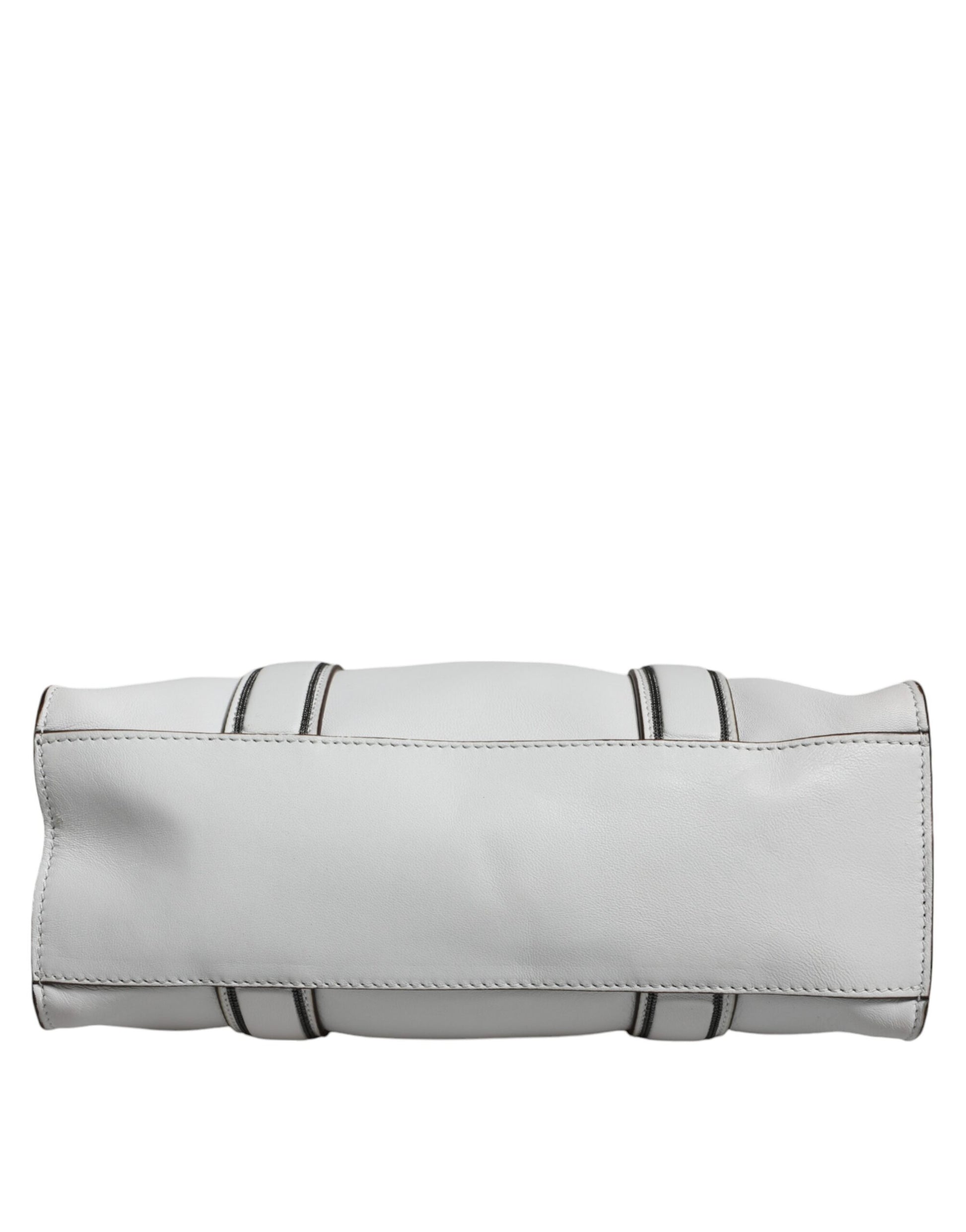 Brunello Cucinelli White Leather Logo Shoulder Strap Shopping Tote Bag