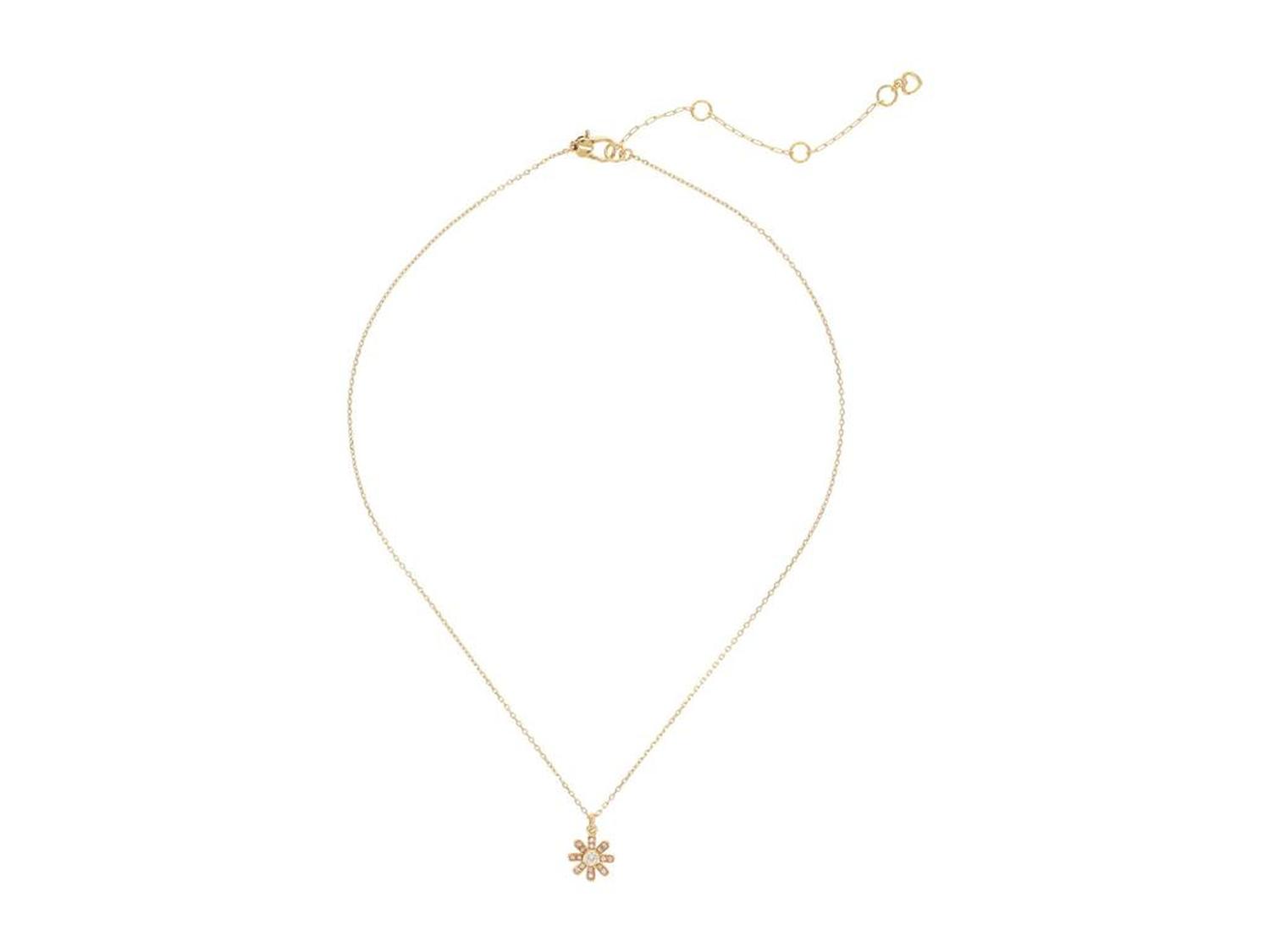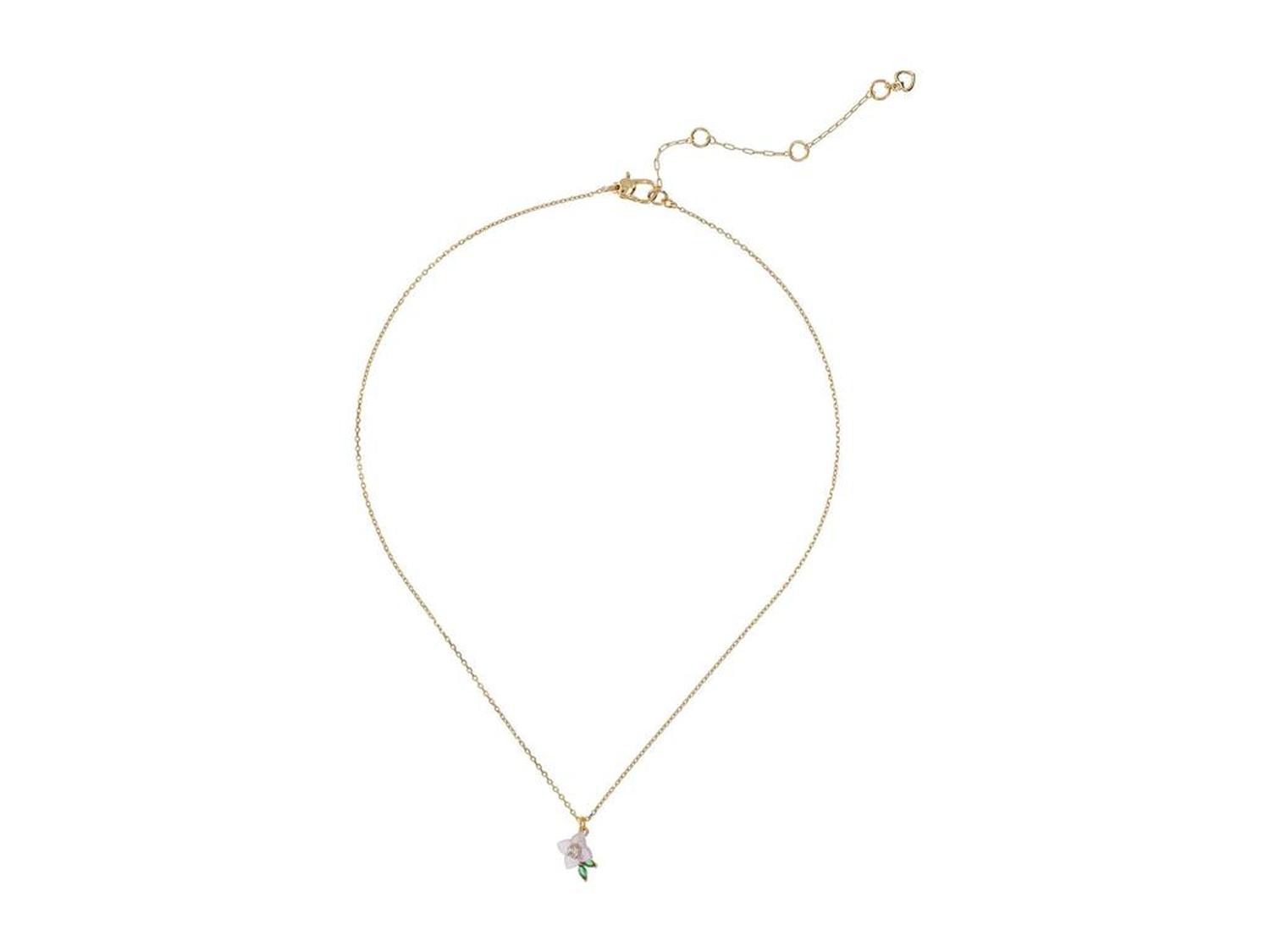 Give love, wear love with the Kate Spade New York® Bursting Blooms Pendant. Crafted from brass, this necklace features thin chain, cubic zirconia gem type pendant, and signature lobster claw closure.