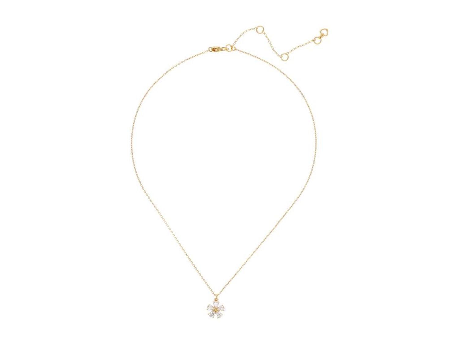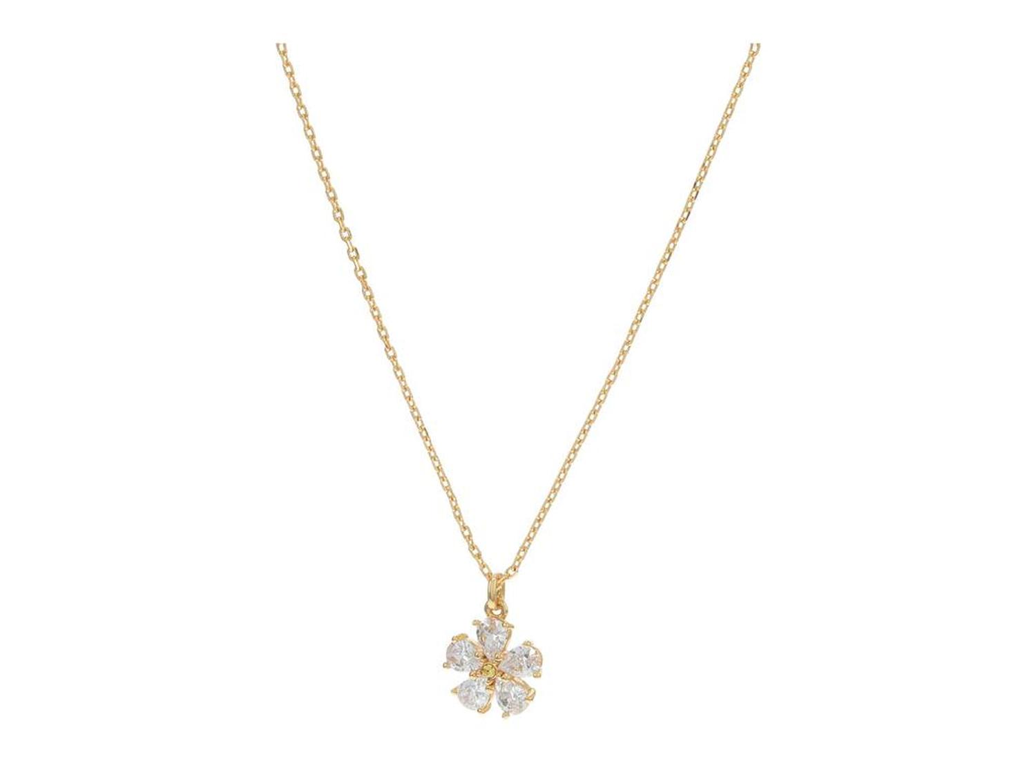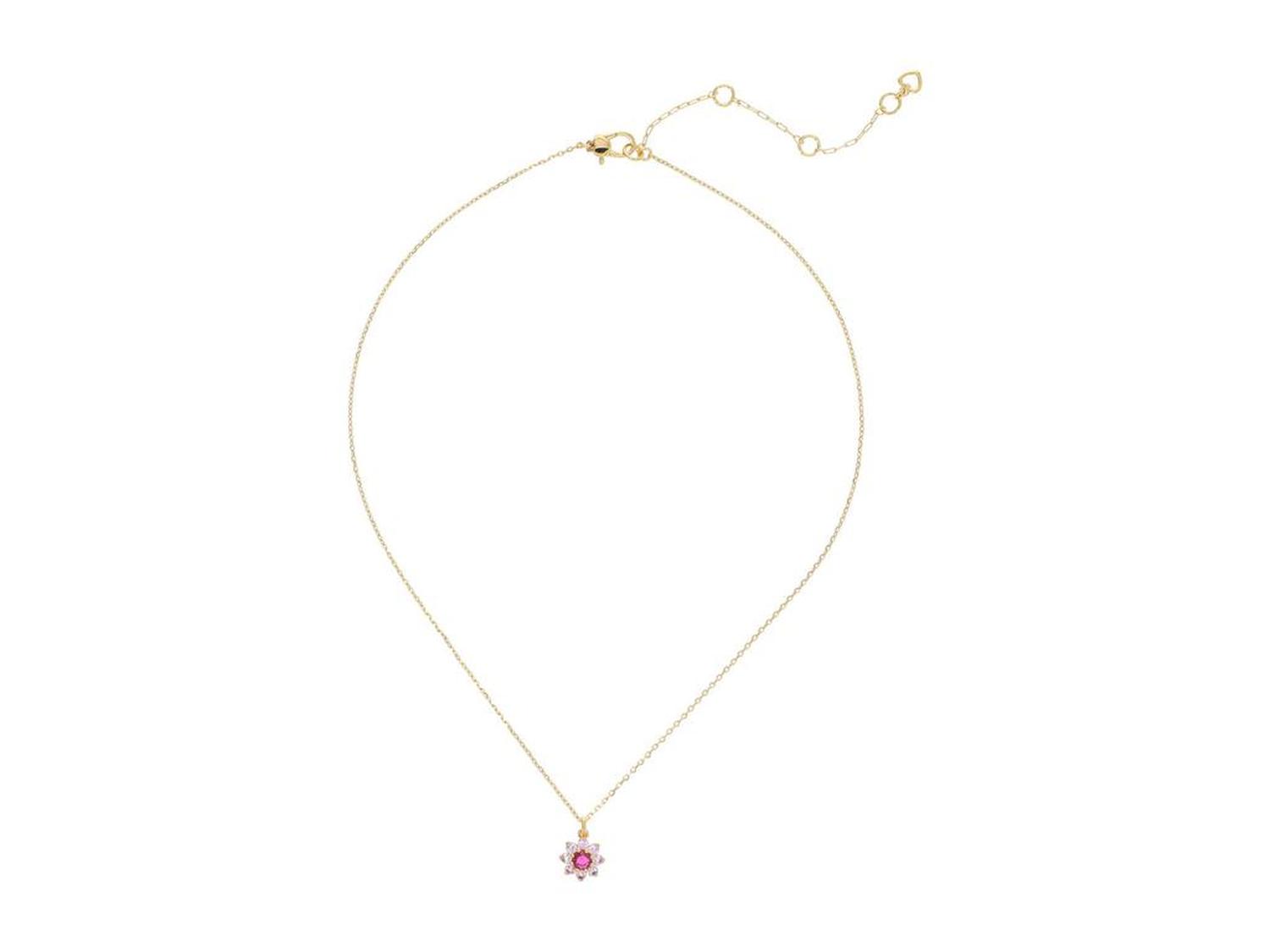 • Give love, wear love with the Kate Spade New York® Bursting Blooms Pendant. Crafted from brass, this necklace features thin chain, cubic zirconia gem type pendant, and signature lobster claw closure.