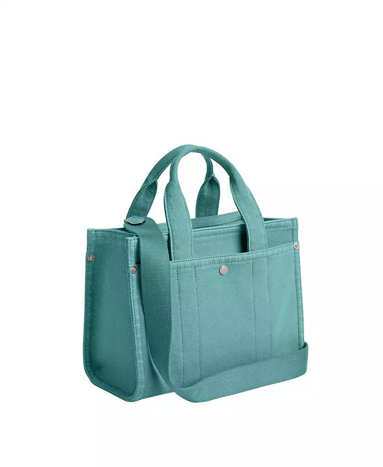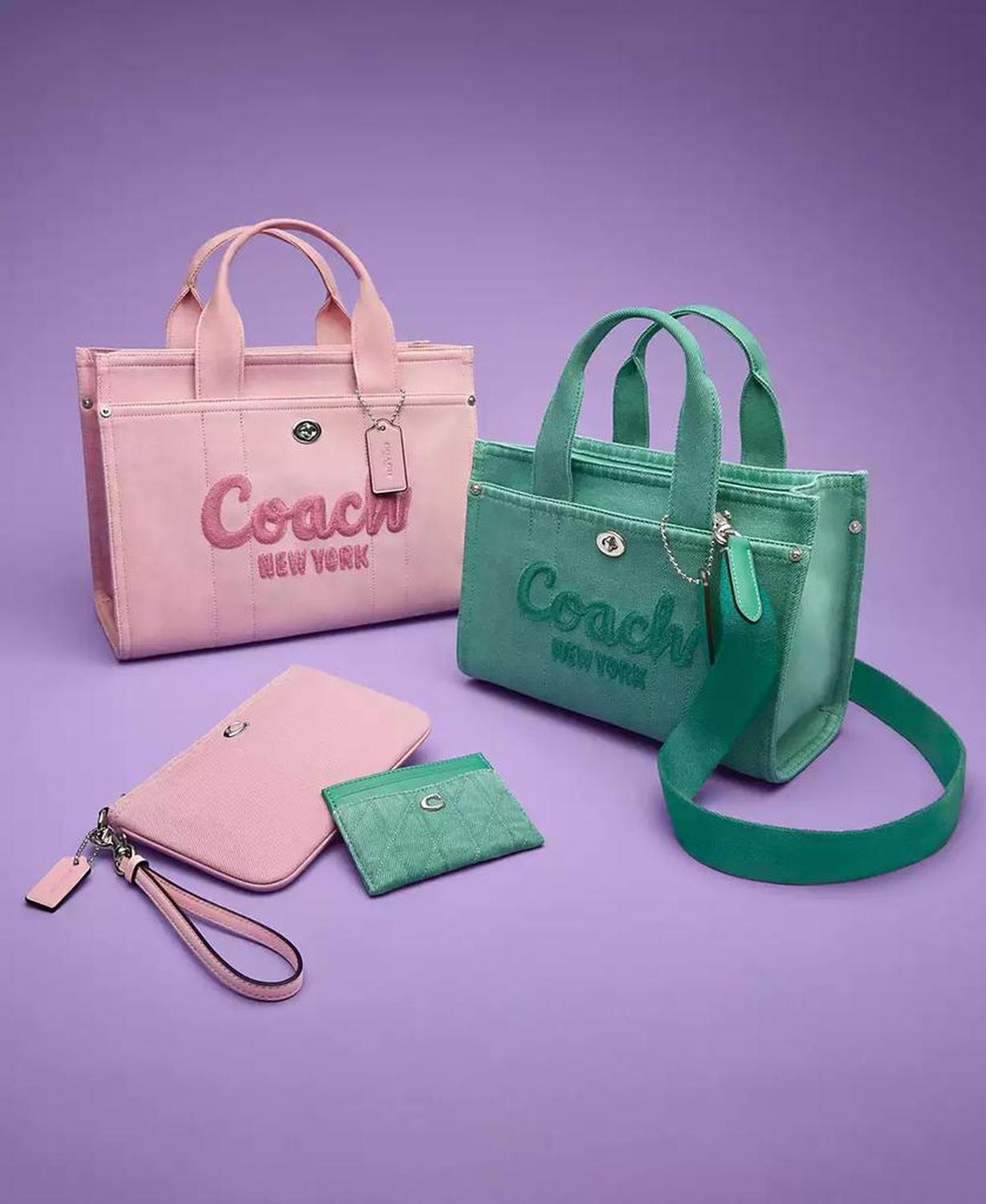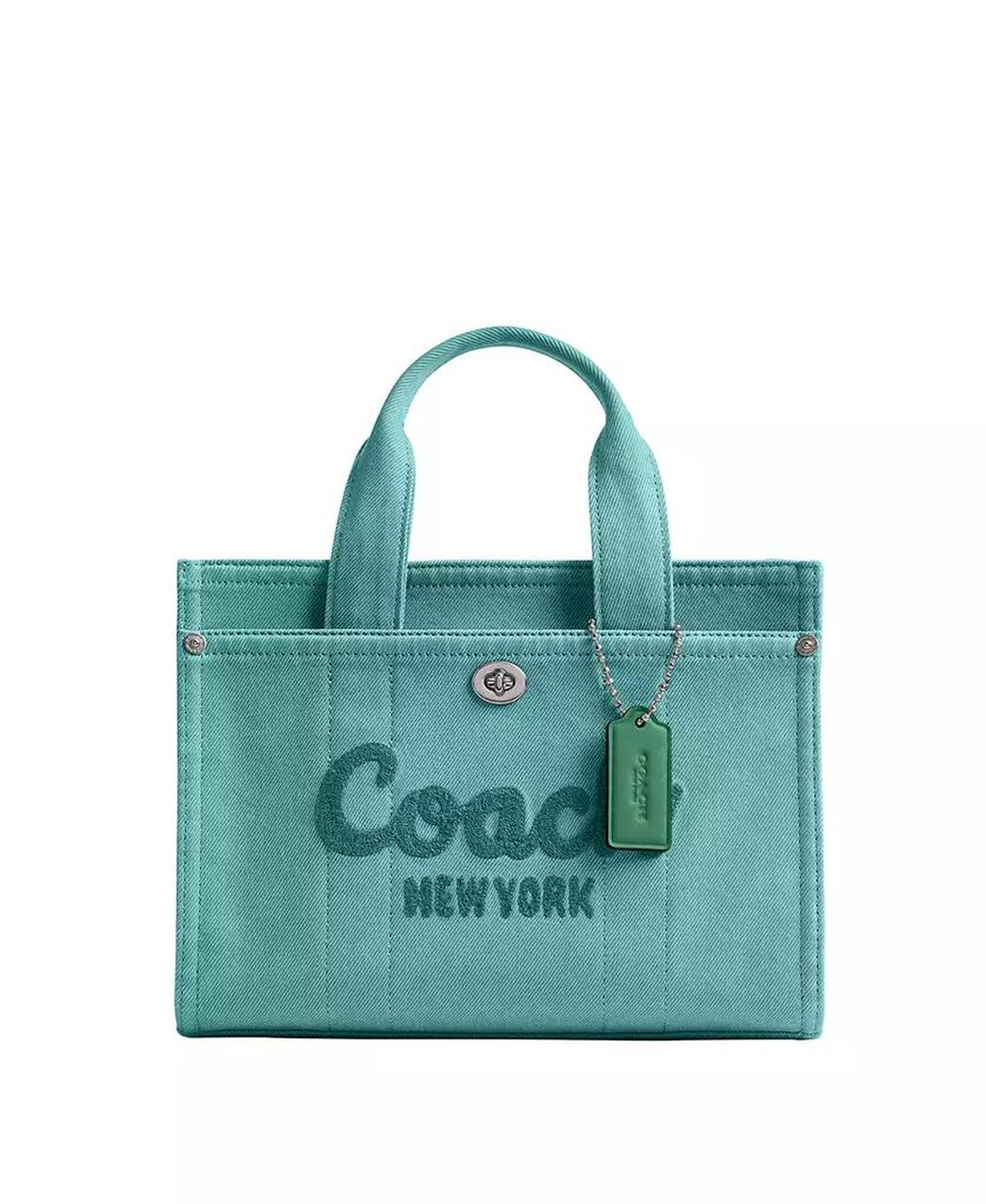 Carry as much as you like with the lightweight Cargo tote from COACH. Detailed with a cursive script embroidery and iconic lock closure. Mini-sized bag; 10-1/4"W x 7-3/4"H x 5"D (width is measured across the bottom of handbag); 1.36 lb. approx. weight Silhouette is based on 5'9" model 4"L handles; 24"L removable strap Zip closure Silver-tone exterior hardware, turn-lock pocket & snap pocket Tablet compatible (std. size 8"-10") This item purchased online must be returned to the vendor by mail only. This item cannot be returned to Macy's stores. 100% cotton Spot clean Imported