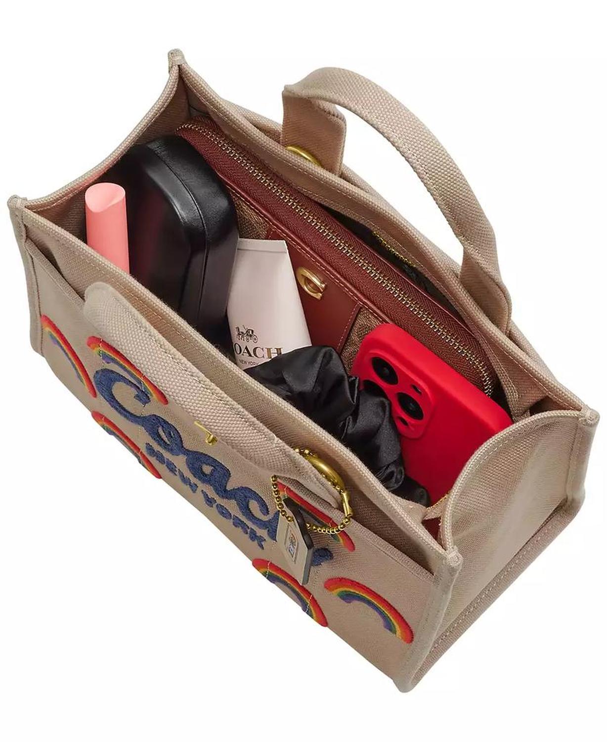 Carry as much as you like with this lightweight Cargo tote from COACH. Detailed with an iconic turn-lock closure, this compact 26 has an open interior with room for a tablet, two outside pockets for easy organization, and a removable webbing strap for shoulder or crossbody wear.