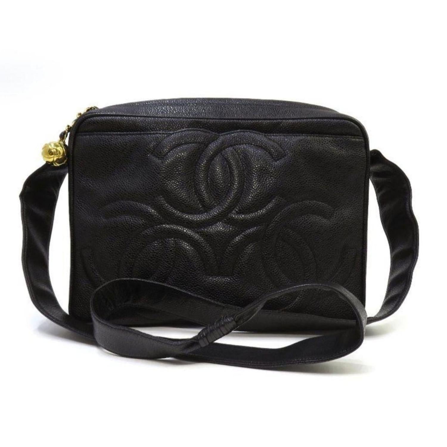 Brand - ChanelModel - Triple cocoColor - BlackMaterial - LeatherInclusions - /Dimensions - 20cm x 27cm x 8cmSerial number - 3****(Unreadable on the pictures)Country of origin - FranceCondition - AB - good condition.The Chanel Triple Coco shoulder bag is an elegant and stylish accessory designed exclusively for women. Crafted from luxurious black caviar leather, this shoulder bag showcases Chanel's commitment to blending fashion with sophistication. The Caviar Skin line is known for its durability and texture, making it a practical choice. The Chanel Triple Coco shoulder bag adds a touch of luxury to the modern woman's ensemble, combining both style and functionality.The bag displays a slight loss of shape on the outside, and inside, there are slight scratches and stains.We recommend that you look at all the pictures before you make your purchase to make sure you are satisfied with the condition of the item.