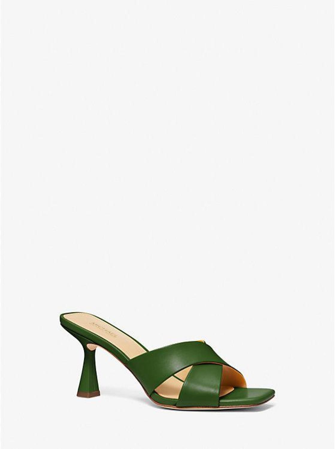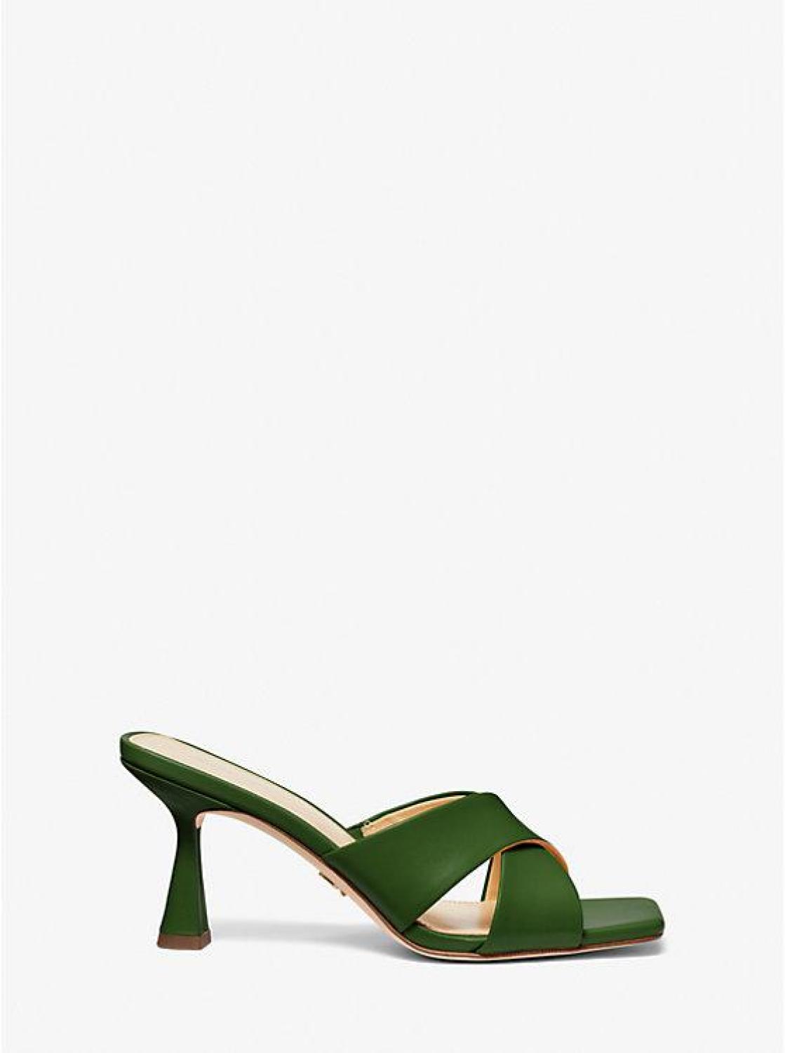 • Our Clara mules are defined by their sculptural, fluted heels. Updated for the season in an array of striking hues, they feature sleek leather crossover straps and a retro square toe. Wear yours with just about anything.