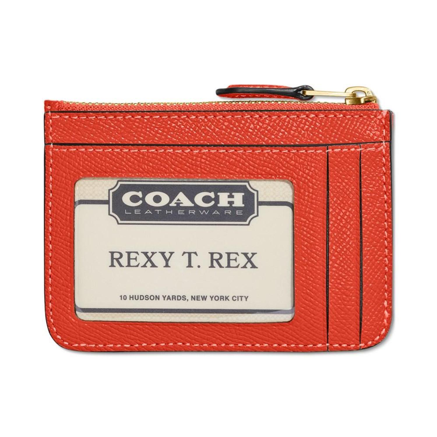 Sleek and classically COACH, this Crossgrain Mini ID Skinny Leather Wallet is the perfect accessory for the light traveler. 4-1/4"W x 3"H; 0.13 lbs. approx. weight Zip-top closure Gold-tone hardware, attached split key ring, exterior card slots, zip pocket & ID window Leather Professional leather clean Imported