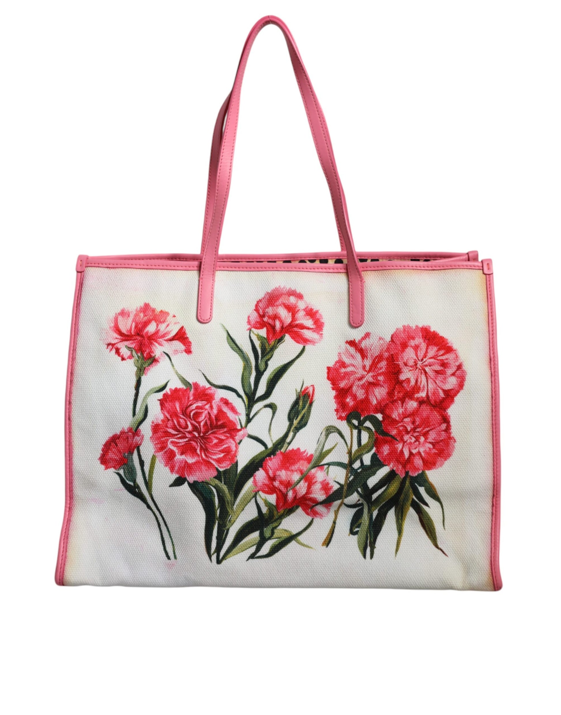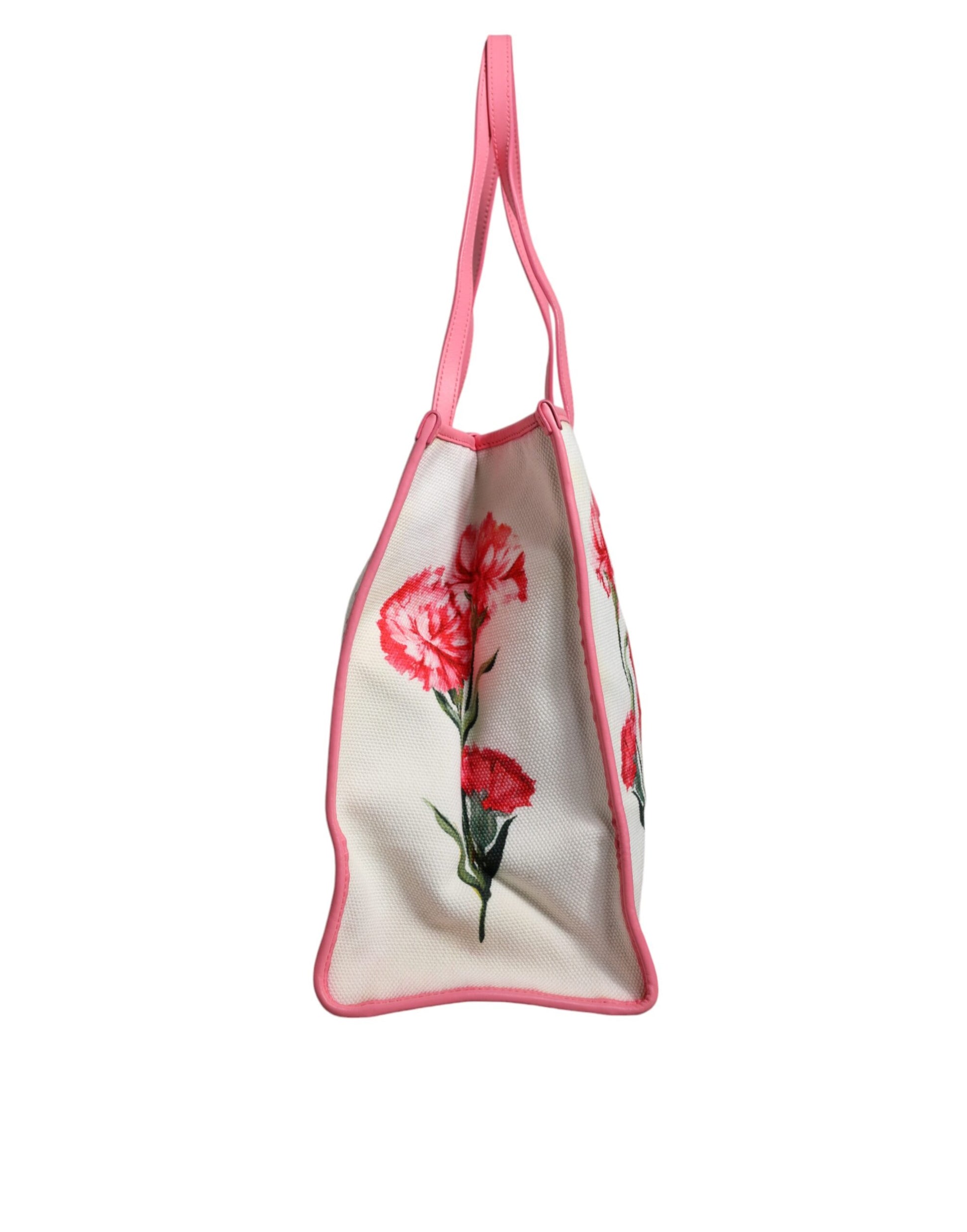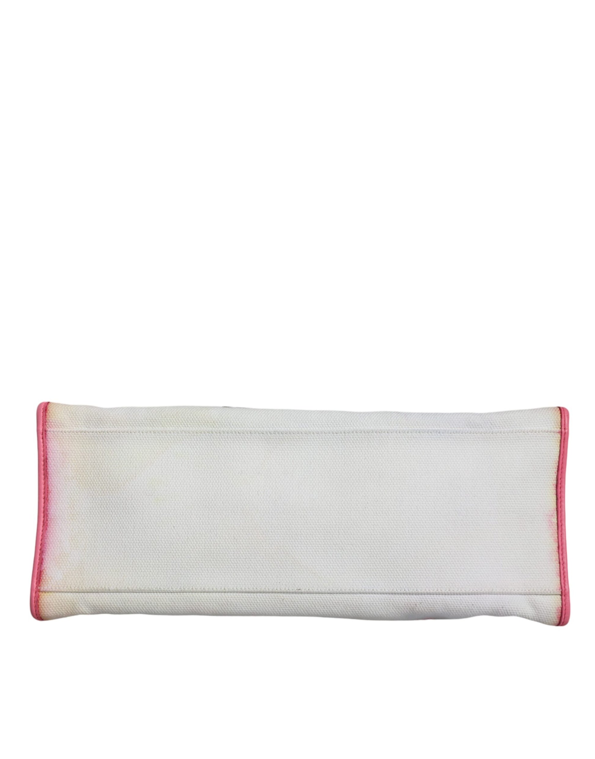 Dolce & Gabbana White Canvas Rose Embroidery Women Shopping Tote Bag