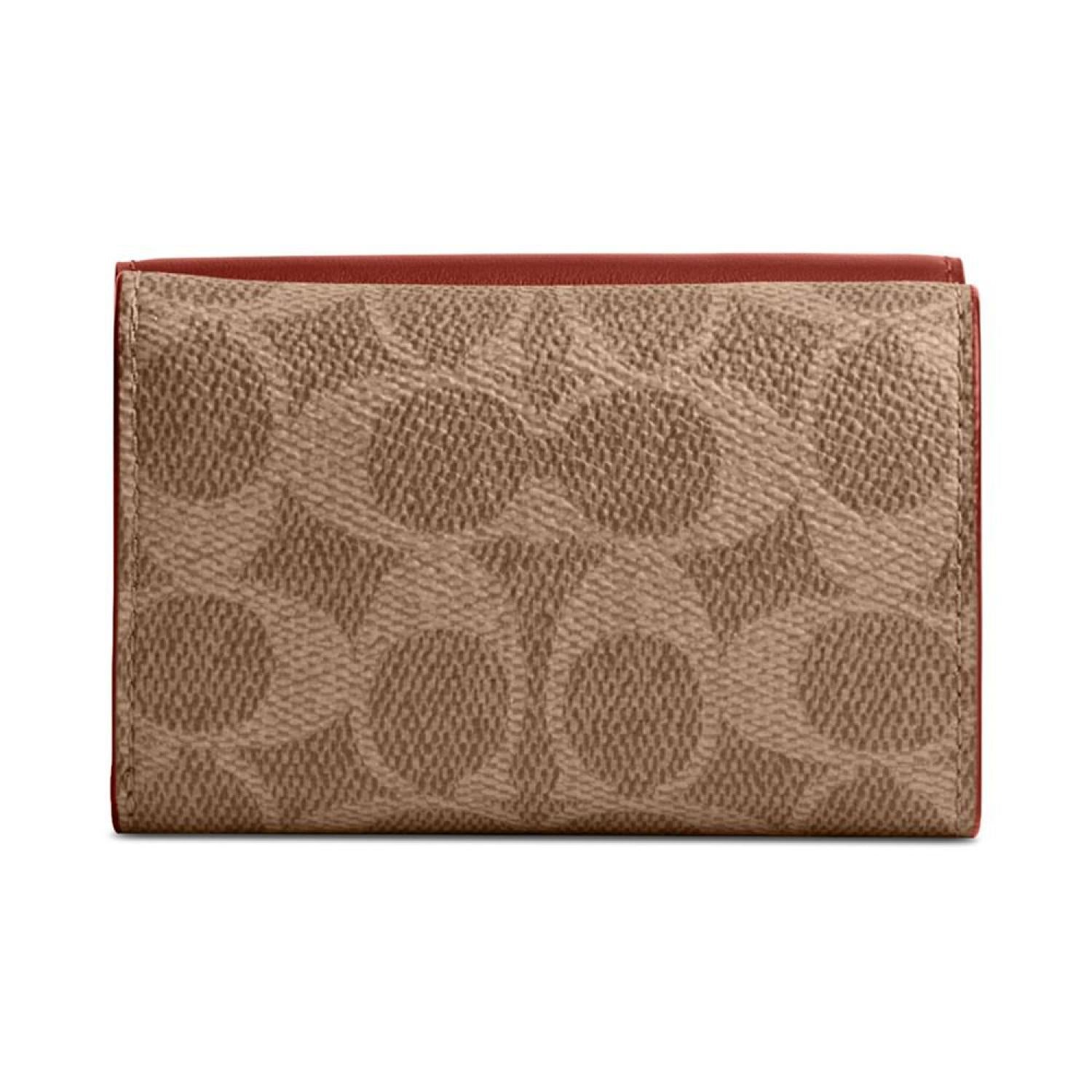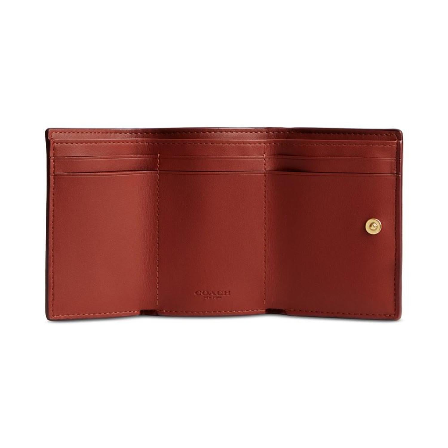Let classic COACH style keep you organized with the Essential Coated Canvas Signature Mini Trifold Wallet. 4-1/4"W x 2-3/4"H x 1"D Snap closure Brass-tone hardware 6 interior card slots & full-length bill compartment Cotton, polyester, leather Spot clean Imported