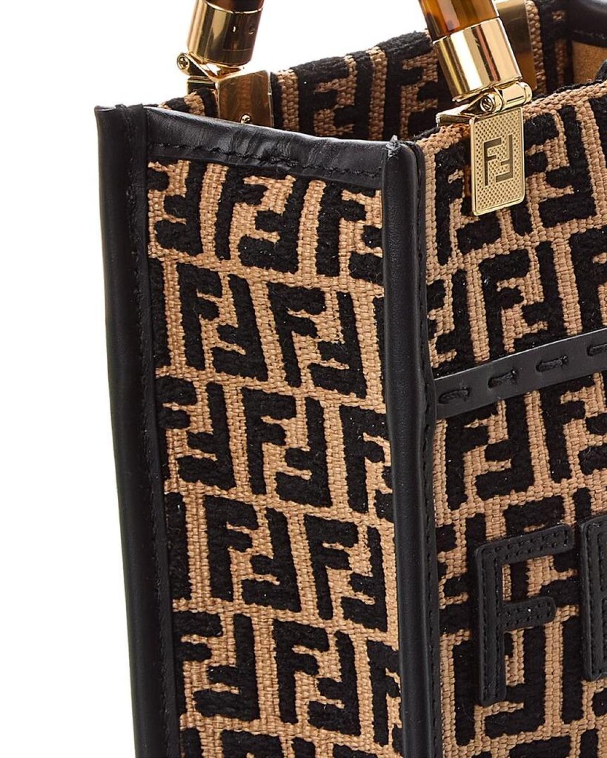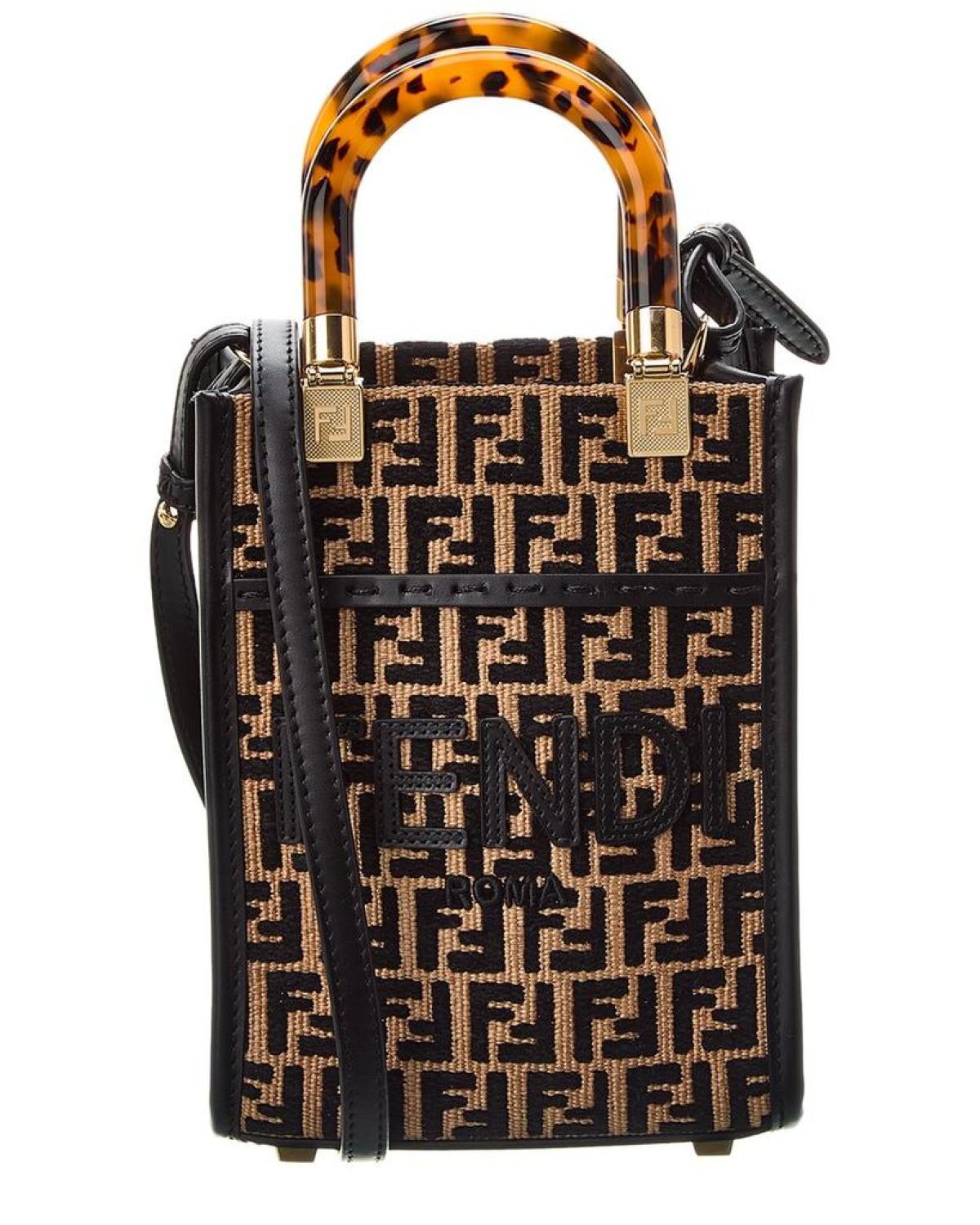 Introducing the FENDI Sunshine Mini Raffia & Leather Tote, a luxurious and timeless piece designed for women who appreciate innovative and elegant Italian luxury. Made in Italy, this handbag showcases the perfect blend of sophistication and functionality.Crafted from black and beige FF raffia and leather, this tote features exquisite gold-tone hardware and stunning plexiglass top handles, adding a touch of glamour to any ensemble. The fabric lining complements the exterior, creating a harmonious and visually appealing design.With a measurement of 5 inches wide, 6.5 inches high, and 2.5 inches deep, this mini tote provides ample space for your daily essentials while maintaining a compact and stylish silhouette. The top handles have a convenient drop of 3 inches, allowing for easy carrying options. Additionally, a removable shoulder strap with a drop of 23 inches offers versatile wearing styles to suit your preference.Designed with an open top, this tote ensures quick access to your belongings, making it perfect for those on the go. Please note that all measurements were taken by hand, and slight variations may occur, highlighting the uniqueness of each piece.Rest assured that our products are 100% genuine. While we sometimes source merchandise from trusted independent suppliers, we guarantee the authenticity of every product sold on our site. You can confidently showcase your FENDI Sunshine Mini Raffia & Leather Tote, knowing it's a true symbol of luxury and quality craftsmanship. Elevate your style with this stunning tote bag that effortlessly combines fashion and function.