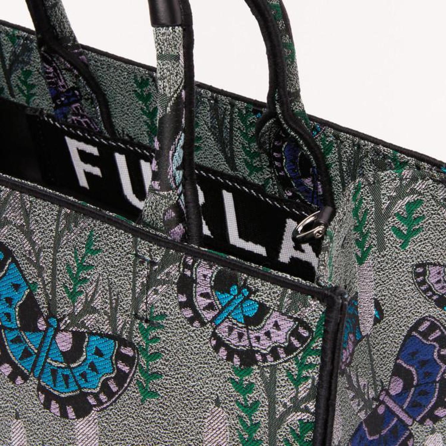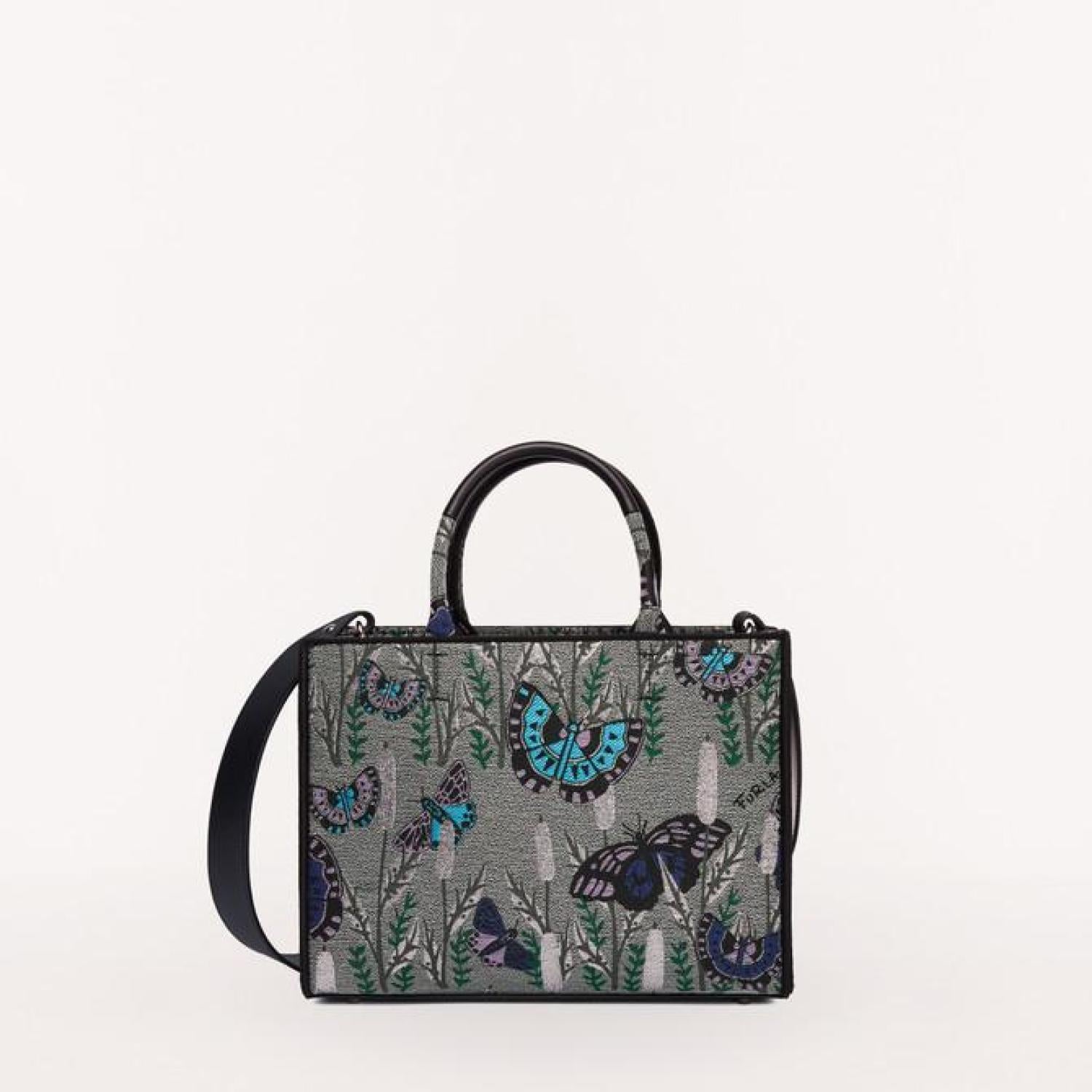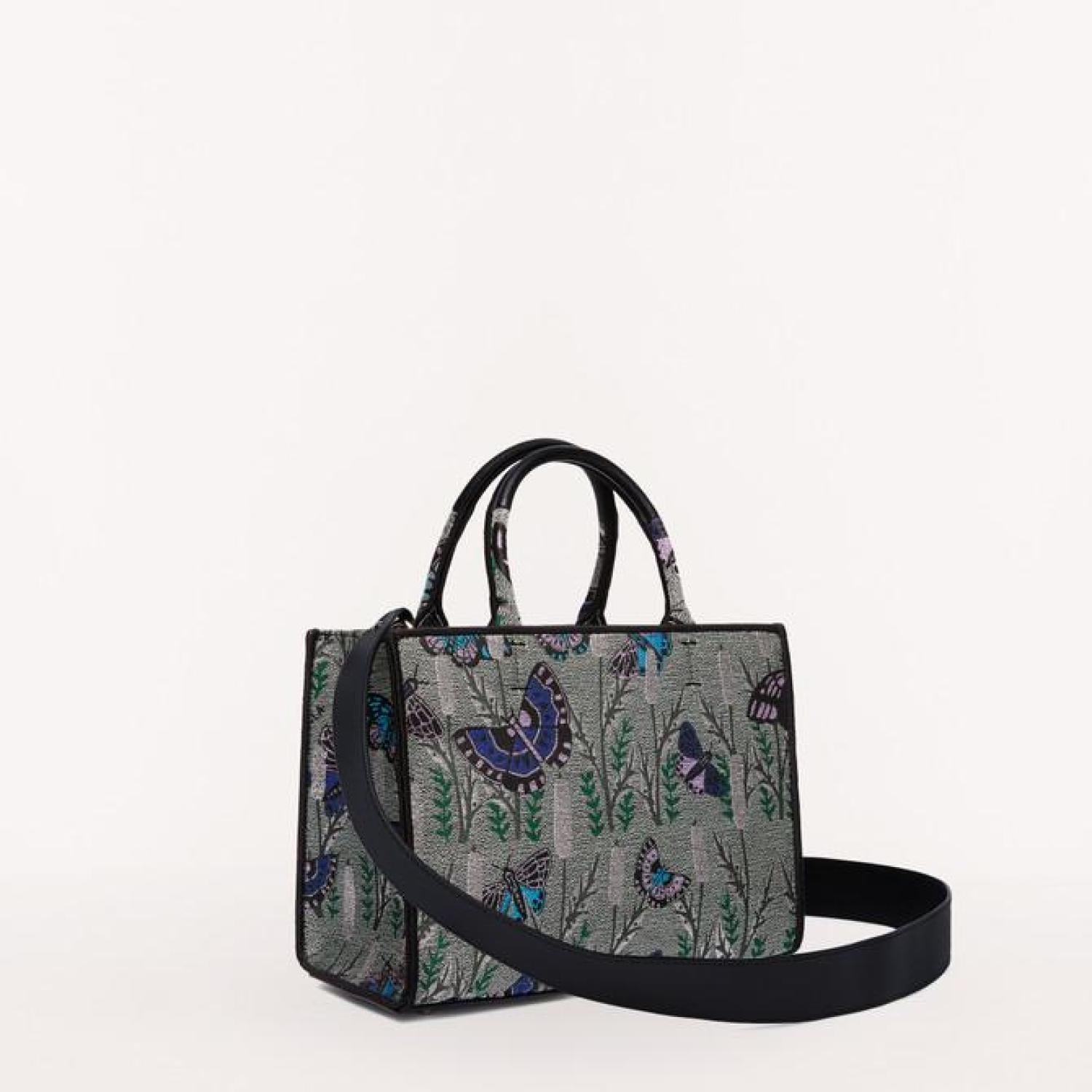• Furla Opportunity is a small shopping bag featuring a double handle. The fabric with a jacquard-embossed butterfly print adds a unique touch to the model. A comfortable and elegant accessory to carry with you during your free time.