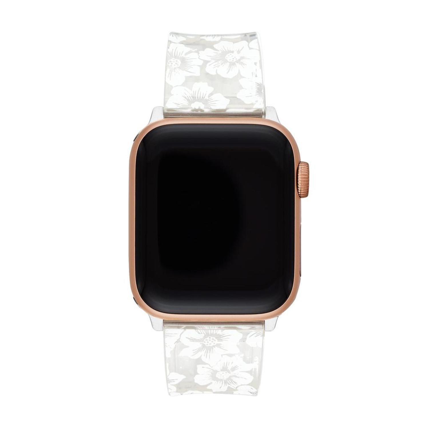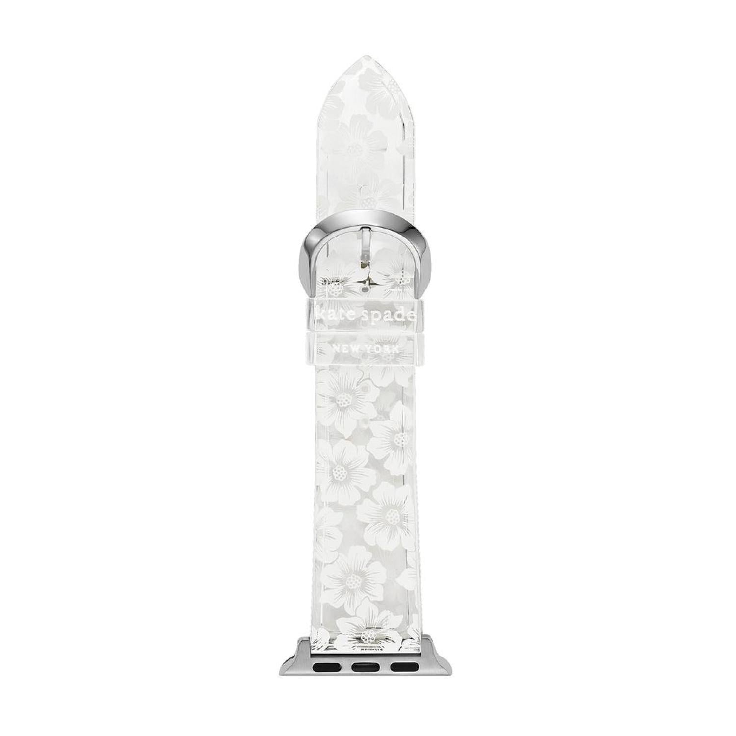 Transparent silicone strap features an allover flower  print and two strap keepers.