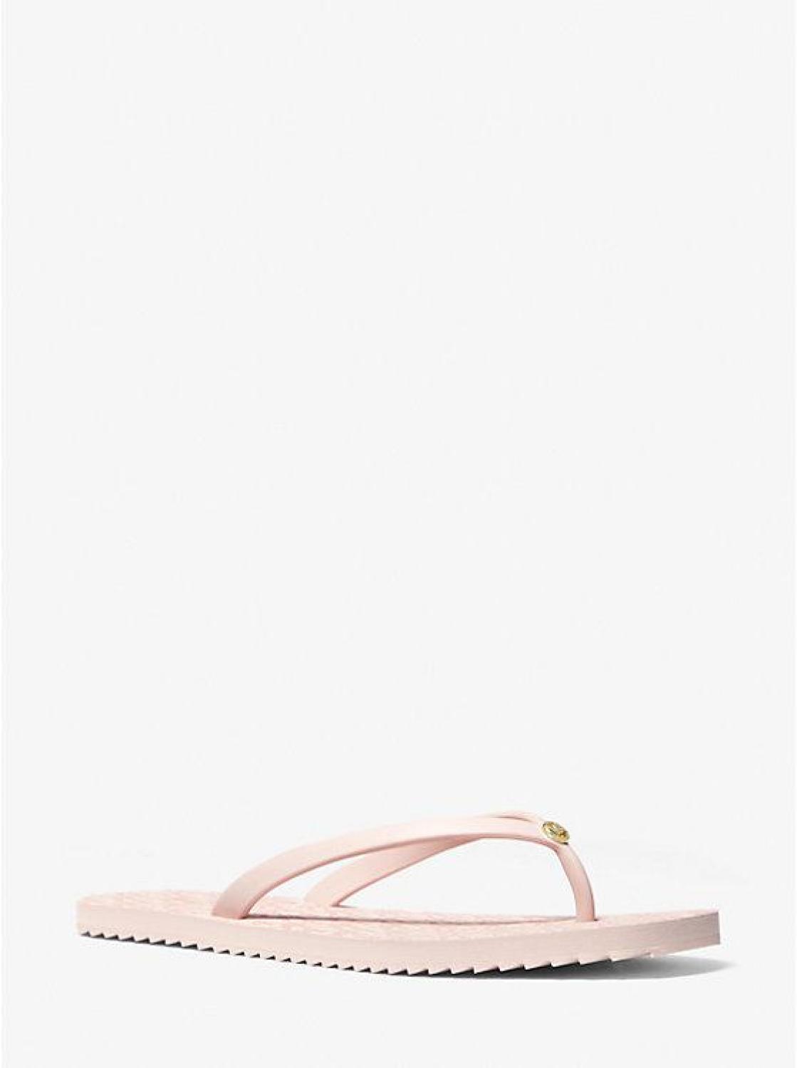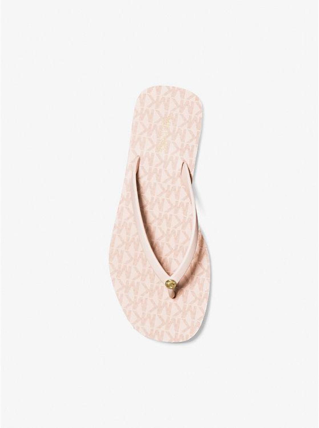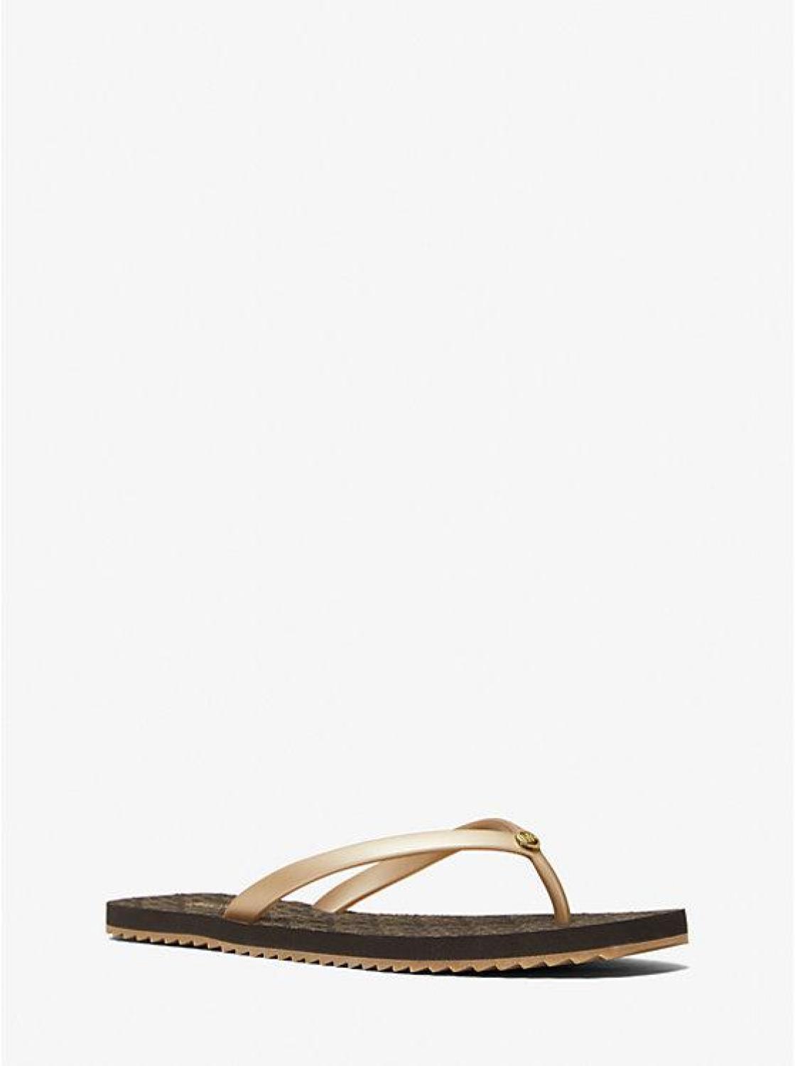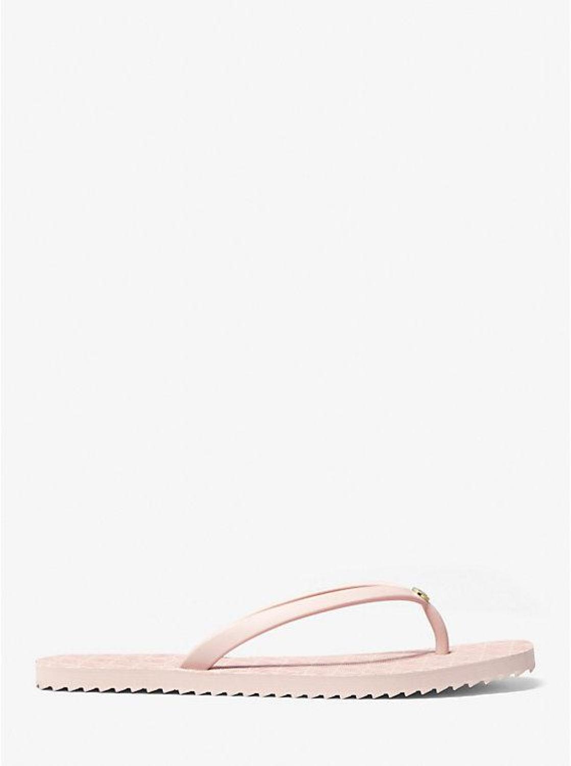 • Elevate your casual footwear with the Jinx flip flop. Set on a signature-print footbed, this pair features a serrated rubber sole and an of-the-moment square toe. It’s finished with a polished charm for added signature appeal. Wear yours with swimsuits and cotton dresses alike.