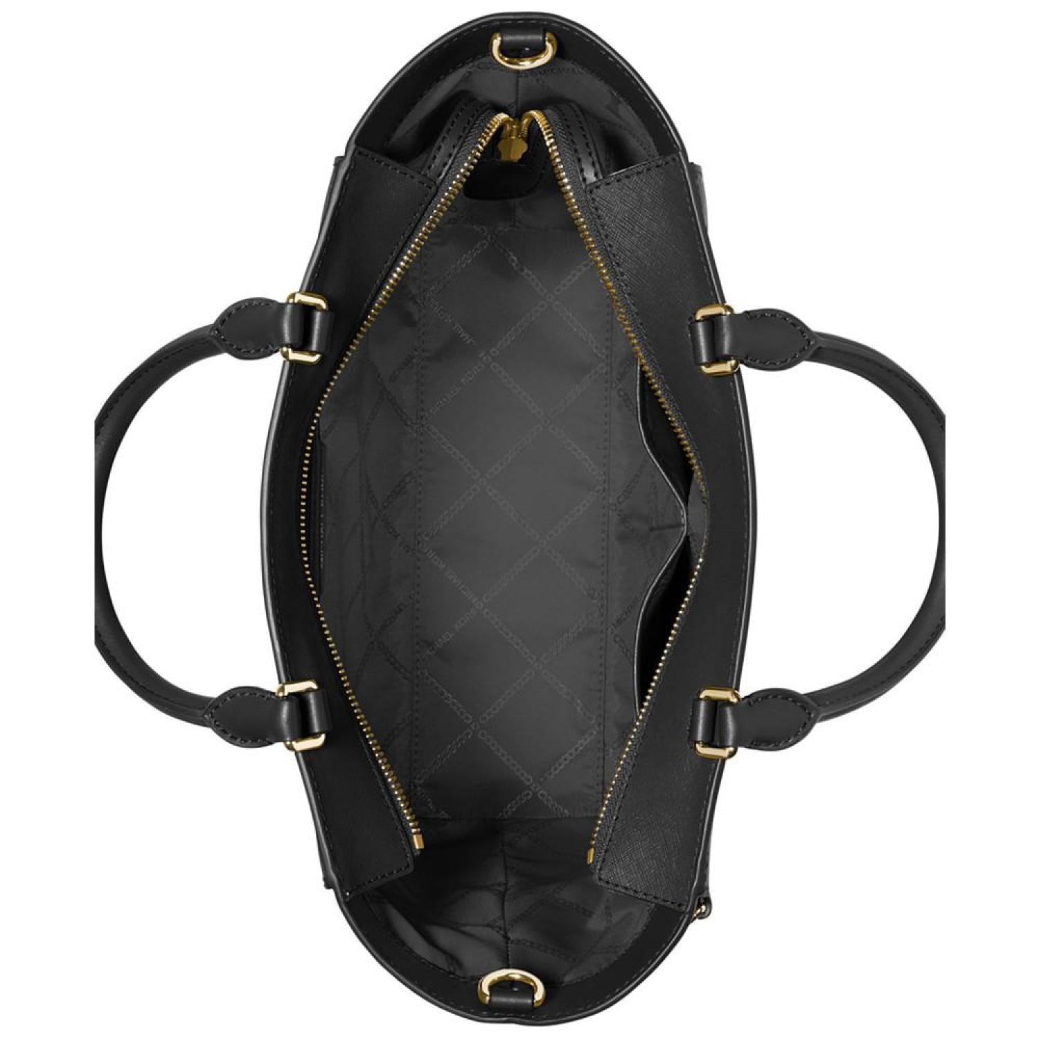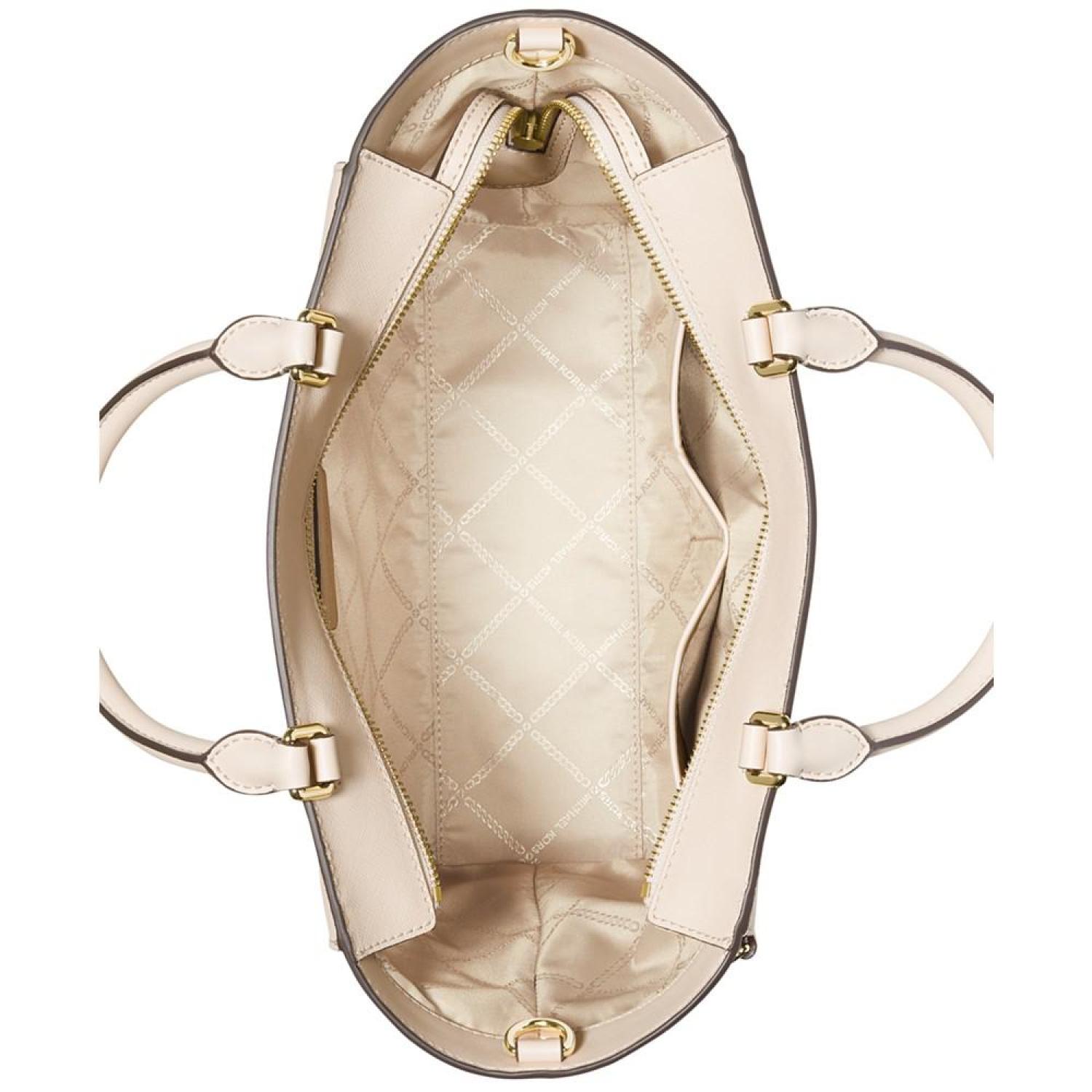 • Refine your look with this leather satchel by MICHAEL Michael Kors. Offering ample space to take on the day, the exterior slip pockets allow for easy access to your essentials, including a drop-in pouch for added convenience.