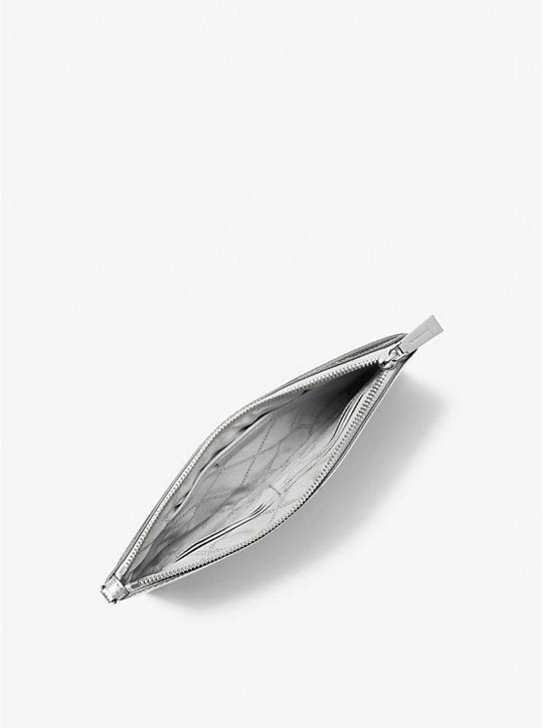 Crafted from metallic pebbled leather, this timeless wristlet is large enough to accommodate the basics, yet small enough to fit into your everyday tote. Its sleek profile makes it easy to dress up or down, and it includes an easy-to-access back pocket that’s perfect for storing your phone. Grab it and go for your next coffee run.