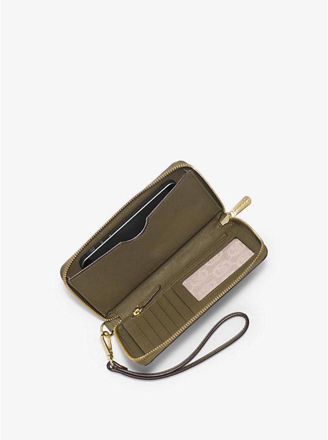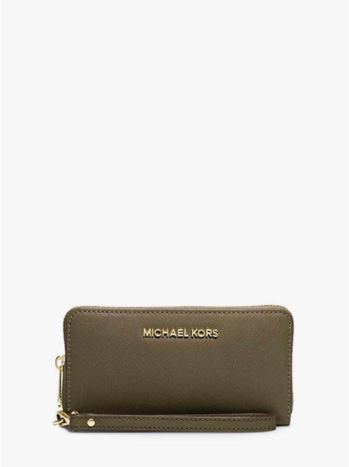 Rendered in Saffiano leather with gold-tone hardware, this sleek case is the perfect all-in-one accessory. It features a dedicated pocket for your phone and a wealth of card slots for easy organization. A must-have when traveling, tuck it into your everyday carryall for effortless elegance.