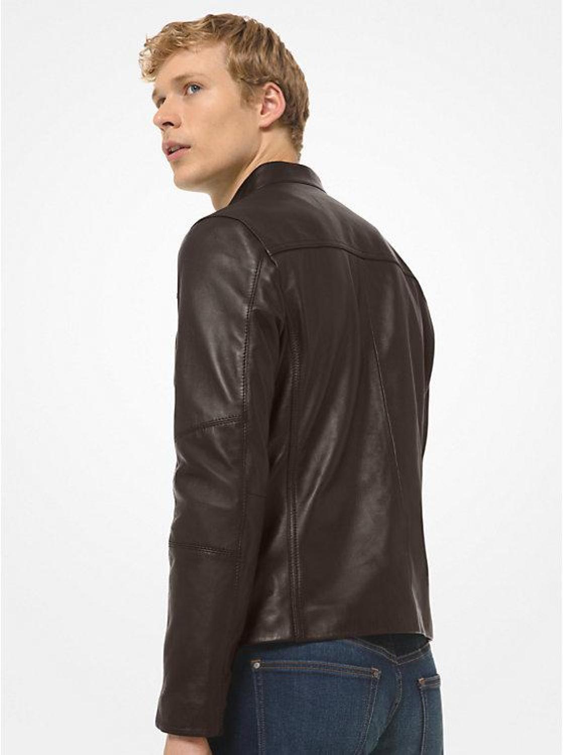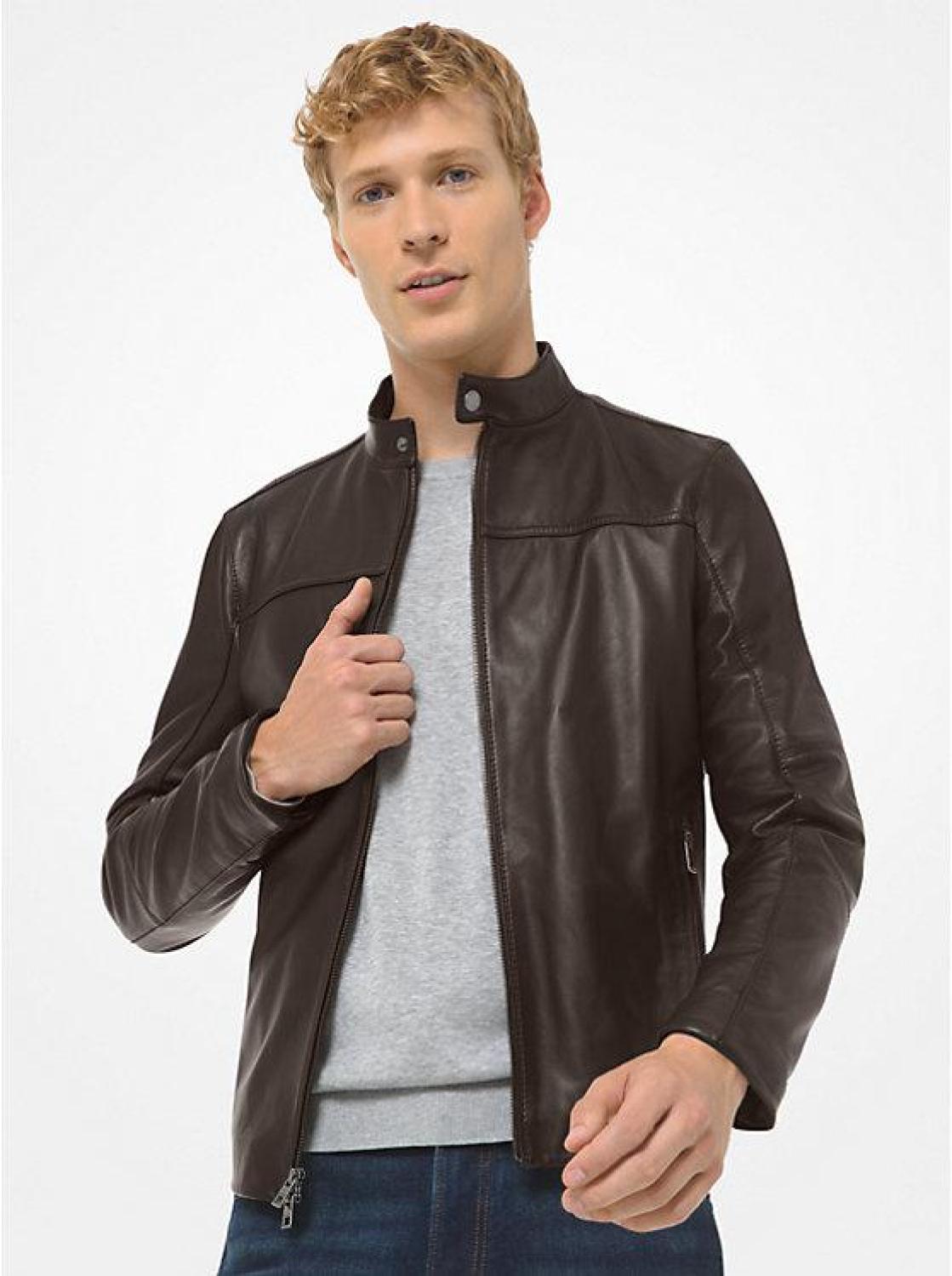 This racer jacket looks perfect on the road or off the beaten path. Expertly crafted from supple lambskin leather, this classic outerwear style is also fully lined and features an inside pocket for storing your cardholder or phone. Wear it with a sweater and boots during the week, switching to a T-shirt and sneakers on the weekend.