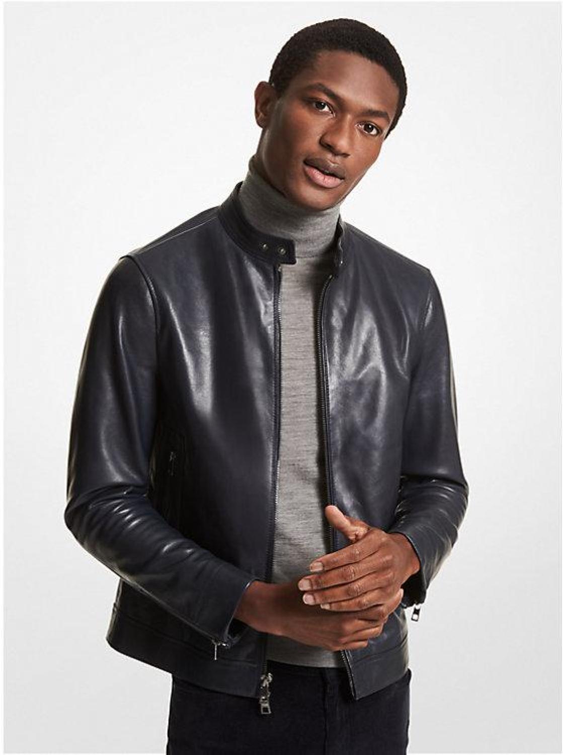 Designed after traditional café racer styles, this jacket is crafted from genuine lamb leather with minimal hardware. A two-way zip fastening allows for easy layering. Wear it with dark denim and boots. • Racer jacket • Lamb leather • 100% leather • Lining: 57% polyester/43% bemberg • Zip fastening • Dry clean by leather professional • Imported • Model is 6’2”/188 cm wearing size M • Racer jacket • Lamb leather • 100% leather • Lining: 57% polyester/43% bemberg • Zip fastening • Dry clean by leather professional • Imported • Model is 6’2”/188 cm wearing size M