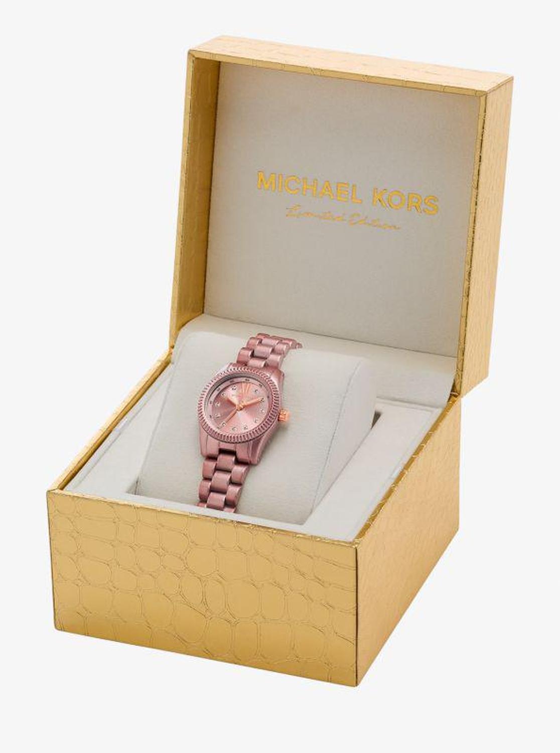 Reimagined with sparkling pavé and rose gold-tone accents for a touch of shine, our petite Lexington watch exudes everyday glamour for Spring 2025. Dipped in an iridescent pink hue for a daring twist, this limited-edition version is made with a stainless steel casebody that turns to reveal Michael Kors’ engraved signature on the back and a unique identification number. Complete with a beveled topring and matching bracelet strap, this dainty timepiece will give both day and night outfits a dose of sophisticated charm. • Petite watch • Stainless steel • Pink-tone hardware/rose gold-tone hardware • Pavé indexes • Petite • 26mm case • Quartz/3-hand movement • Clasp fastening • Water resistant up to 5 ATM • 2-year warranty • Limited edition: 1 of 500 • Imported • Petite watch • Stainless steel • Pink-tone hardware/rose gold-tone hardware • Pavé indexes • Petite • 26mm case • Quartz/3-hand movement • Clasp fastening • Water resistant up to 5 ATM • 2-year warranty • Limited edition: 1 of 500 • Imported