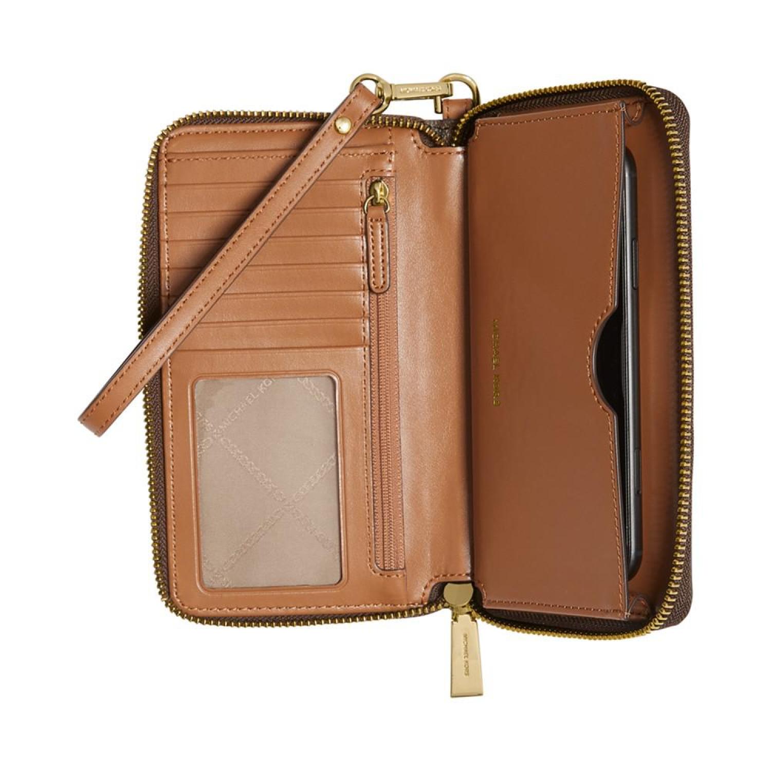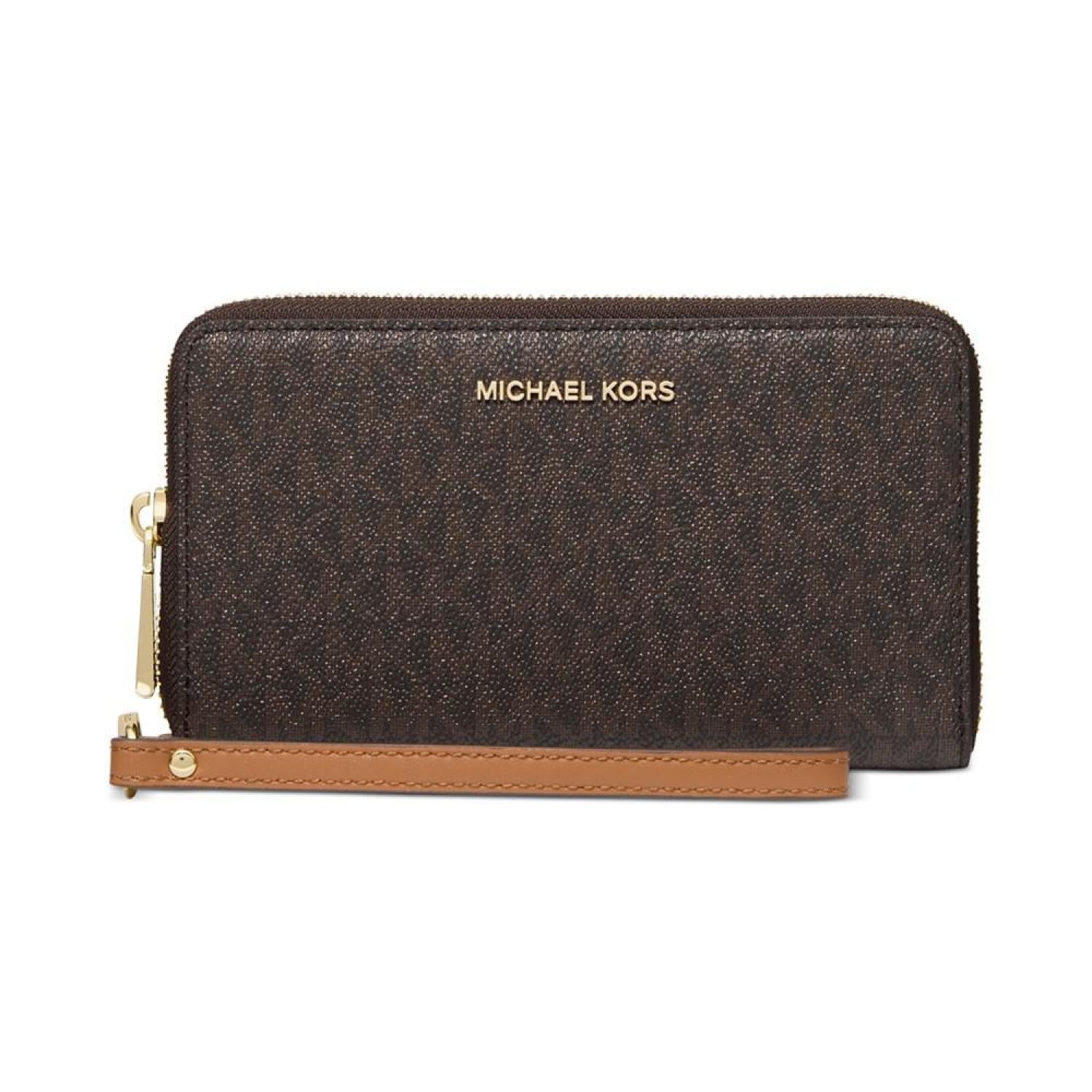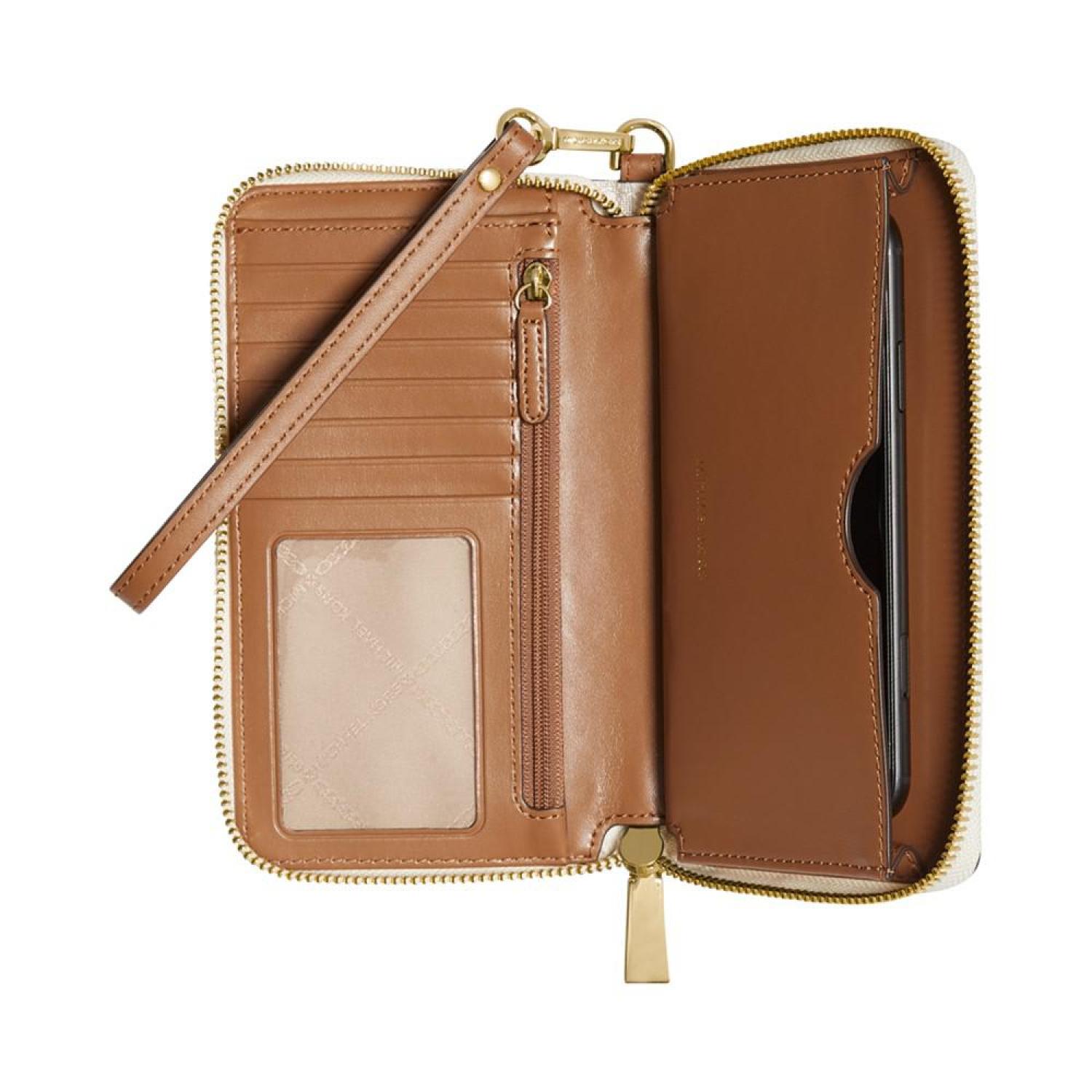 • Keep it all together in chic, organized style: Michael Michael Kors' Jet Set multifunction phone case secures your cards, cash and smartphone with a zip-around closure.