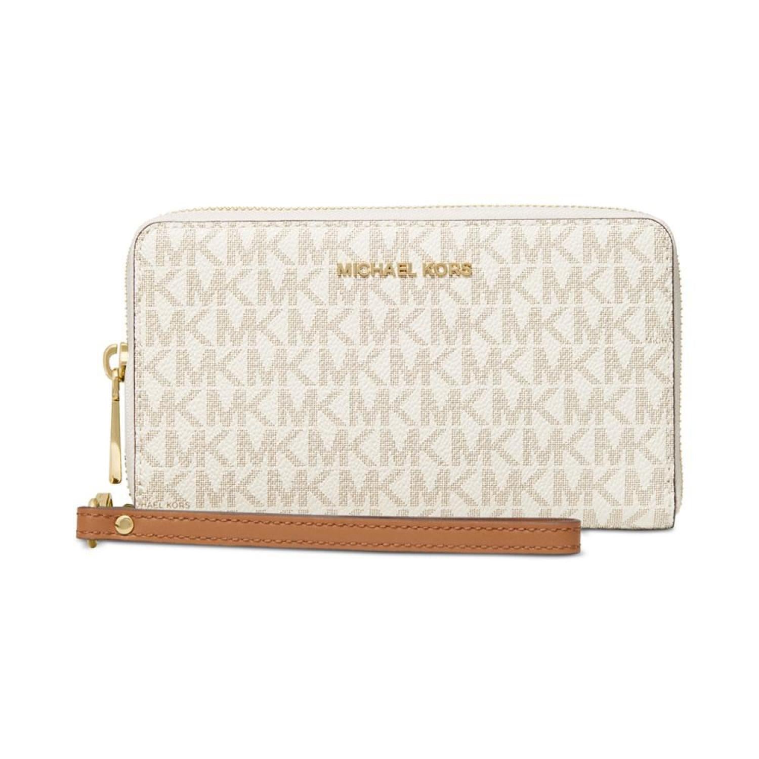 Keep it all together in chic, organized style: Michael Michael Kors' Jet Set multifunction phone case secures your cards, cash and smartphone with a zip-around closure.