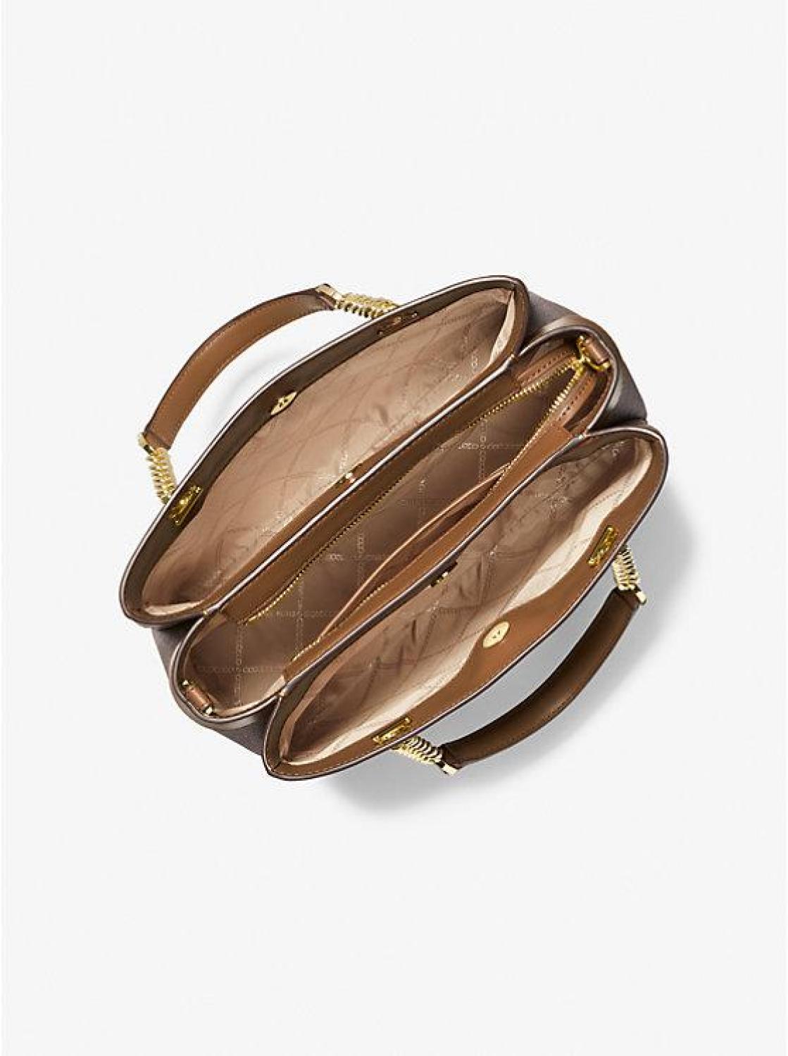 The Lori satchel is crafted from Signature-print canvas with leather trim in a timeless silhouette that will never date. This median-sized carryall features three interior compartments for easy organization, while a removeable crossbody strap allows for multiple carrying options. Store your smartphone and wallet in the zip and slip pockets inside. Satchel Logo-print canvas 89.4% coated canvas/9.6% polyester/1% polyurethane Trim: 60% polyurethane/20% cotton/20% polyester Gold-tone hardware 12”W X 9”H X 4.5”D Handle drop: 4.5” Adjustable strap: 21”-23” Interior details: back zip pocket, center zip compartment, front slip pocket Lining: 100% polyester Snap fastening Imported Satchel Logo-print canvas 89.4% coated canvas/9.6% polyester/1% polyurethane Trim: 60% polyurethane/20% cotton/20% polyester Gold-tone hardware 12”W X 9”H X 4.5”D Handle drop: 4.5” Adjustable strap: 21”-23” Interior details: back zip pocket, center zip compartment, front slip pocket Lining: 100% polyester Snap fastening Imported