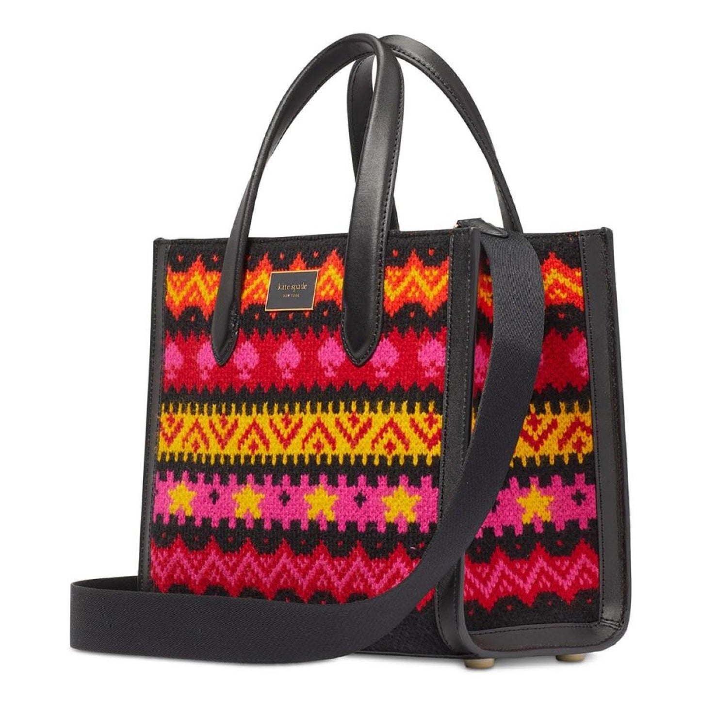 • Add a sweater-inspired pattern to your style by carrying the kate spade new york Manhattan Carnival Fair Isle Sweater Knit Tote.
