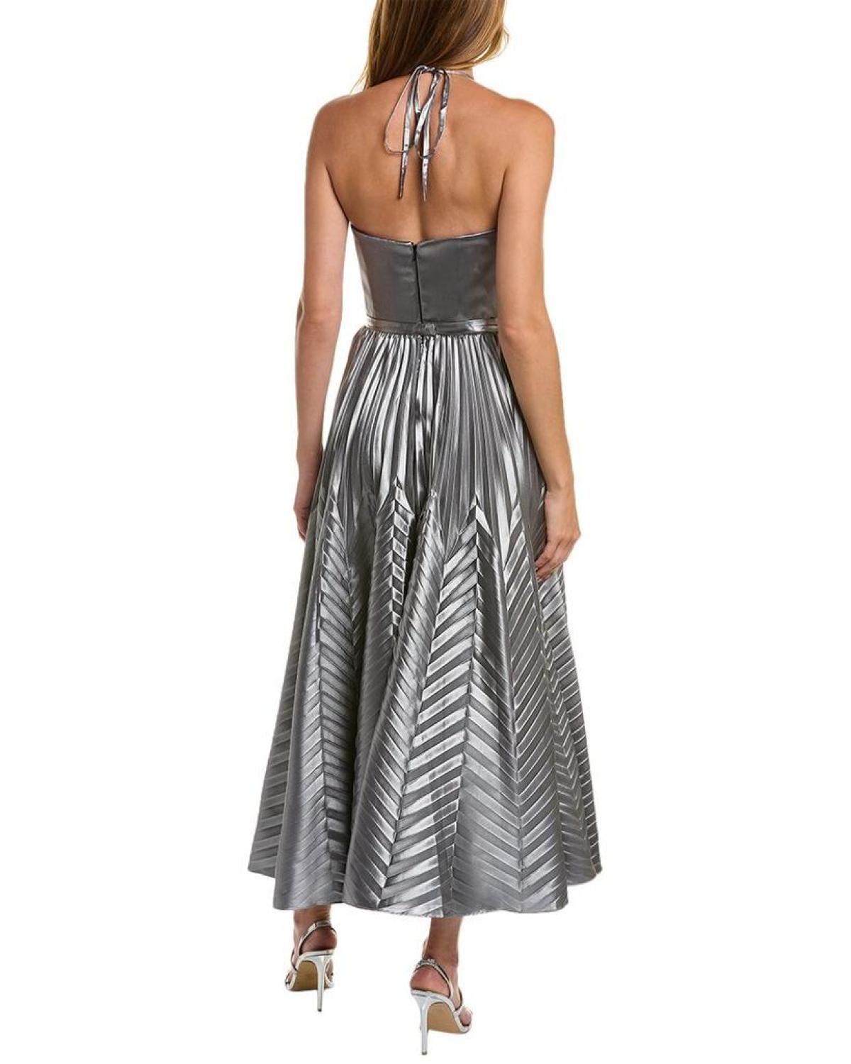 Introducing the Marchesa Notte Halter Georgette Midi Dress, a stunning addition to your wardrobe for that special night. Crafted with impeccable attention to detail, this dress exudes elegance and sophistication.The gunmetal shade of this dress adds a touch of allure, while the pleated bust and skirt create a flattering silhouette. The open back design adds a hint of allure, ensuring you make a lasting impression wherever you go.Measuring approximately 55 inches from shoulder to hem, this midi dress is the perfect length for any occasion. The model featured is 5'9.5' and is wearing a size 4, though please note that measurements may vary slightly by size.Easily put on and take off this dress with the center back zipper, secured by a convenient hook-and-eye closure. Crafted from 100% polyester, it offers both comfort and durability. To keep it in pristine condition, we recommend dry clean only.Proudly imported and bearing the Marchesa Notte brand, this dress is a testament to the renowned quality and style associated with the brand. Expertly designed and meticulously crafted, it is sure to turn heads and make a lasting impression.Elevate your style and embrace the glamour with the Marchesa Notte Halter Georgette Midi Dress. Order yours today and step into a world of timeless beauty.