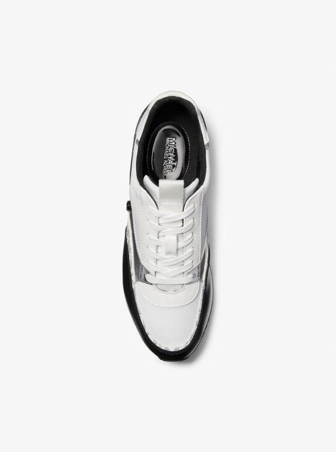 • Our Mariah trainers are reminiscent of classic gym sneakers, but with a glamorous update. Set on thick rubber platform soles, this low-top version is crafted from two-tones with Signature logo-print trim. Wear yours with a sporty mini dress and so much more.