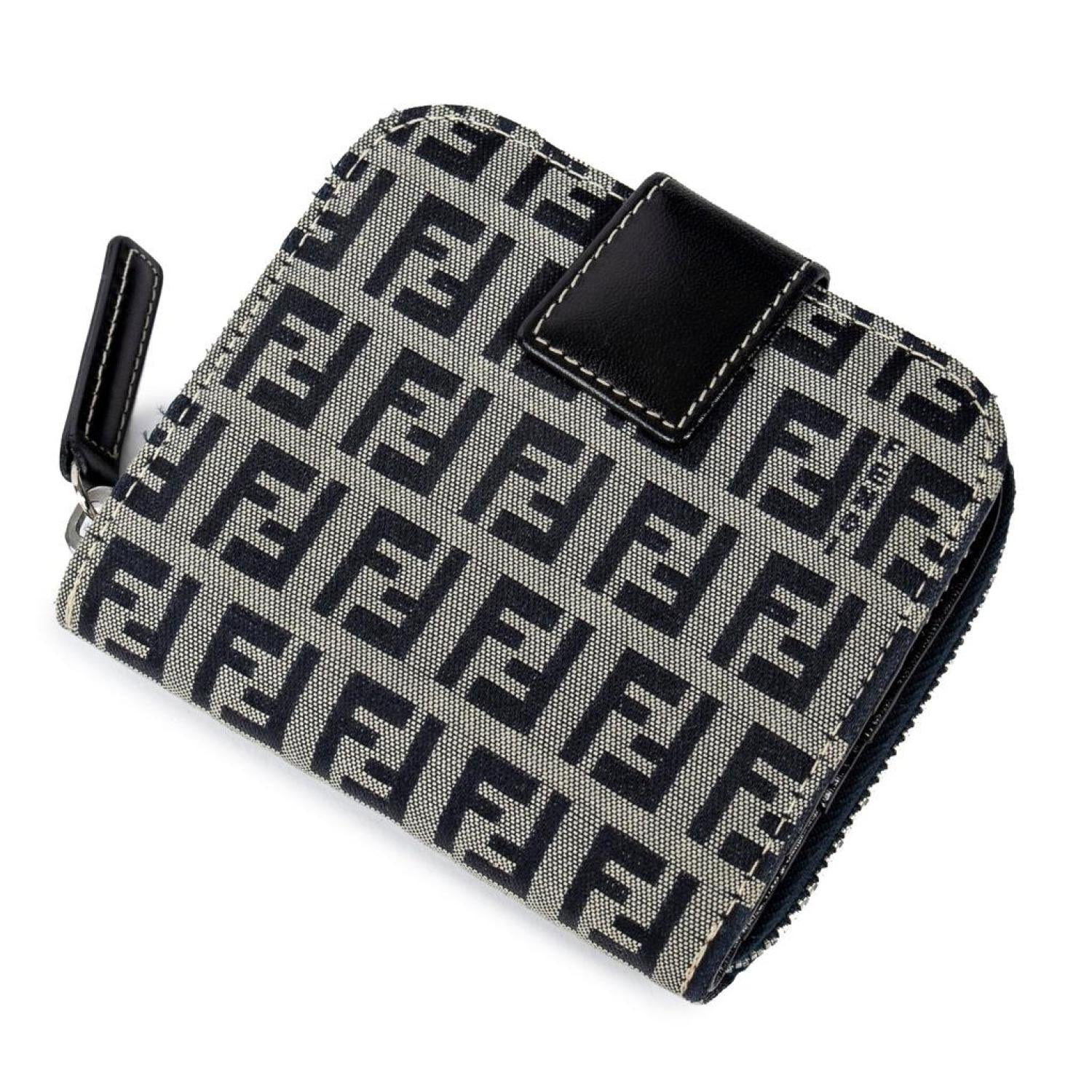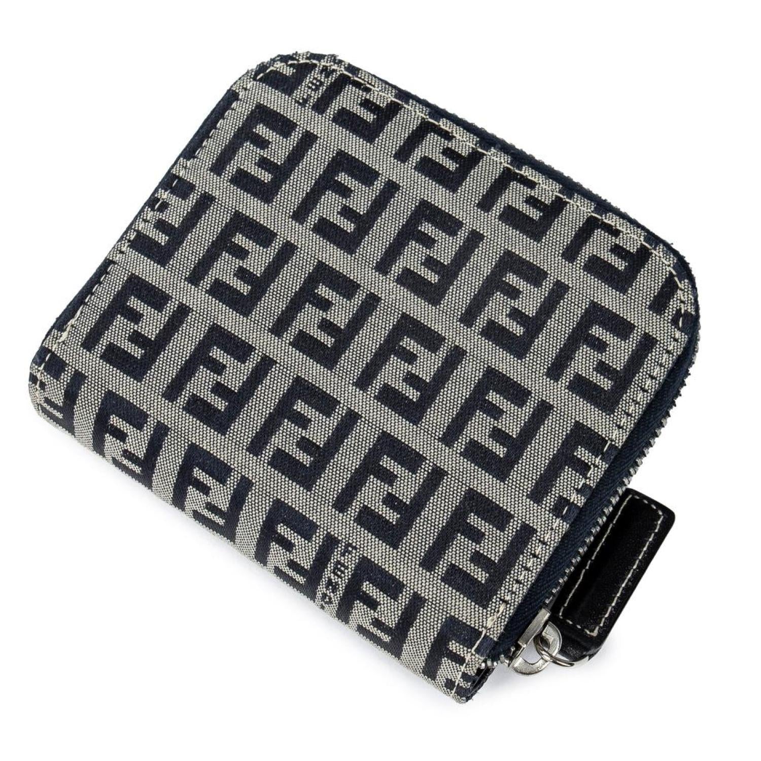 Fendi Wallet in Gray/Navy Zucca Canvas and Silver hardware. Dimensions - 10,5*9,5*2,5cm. Serial number - 2369 31125 018. Inclusions - None.