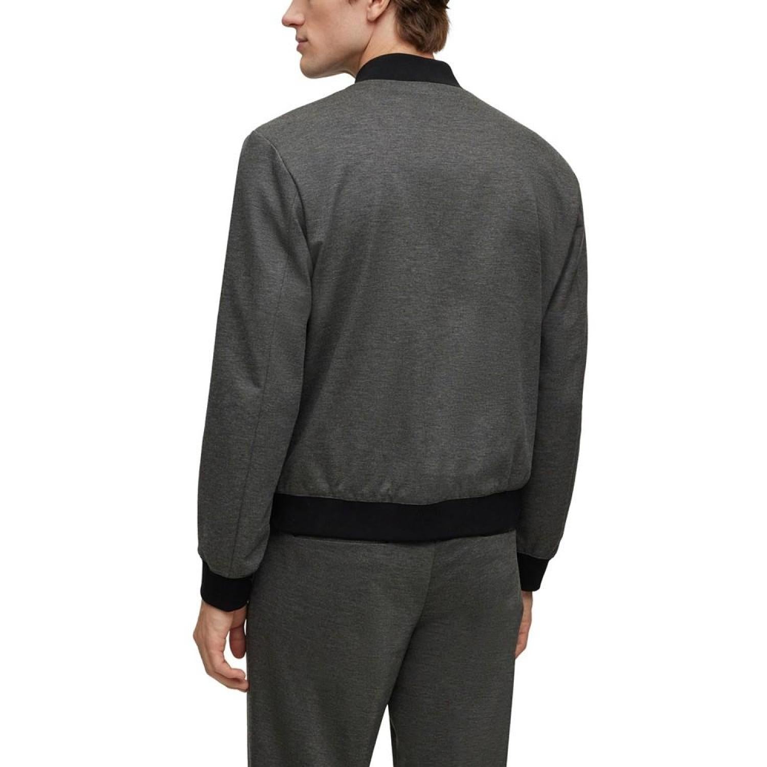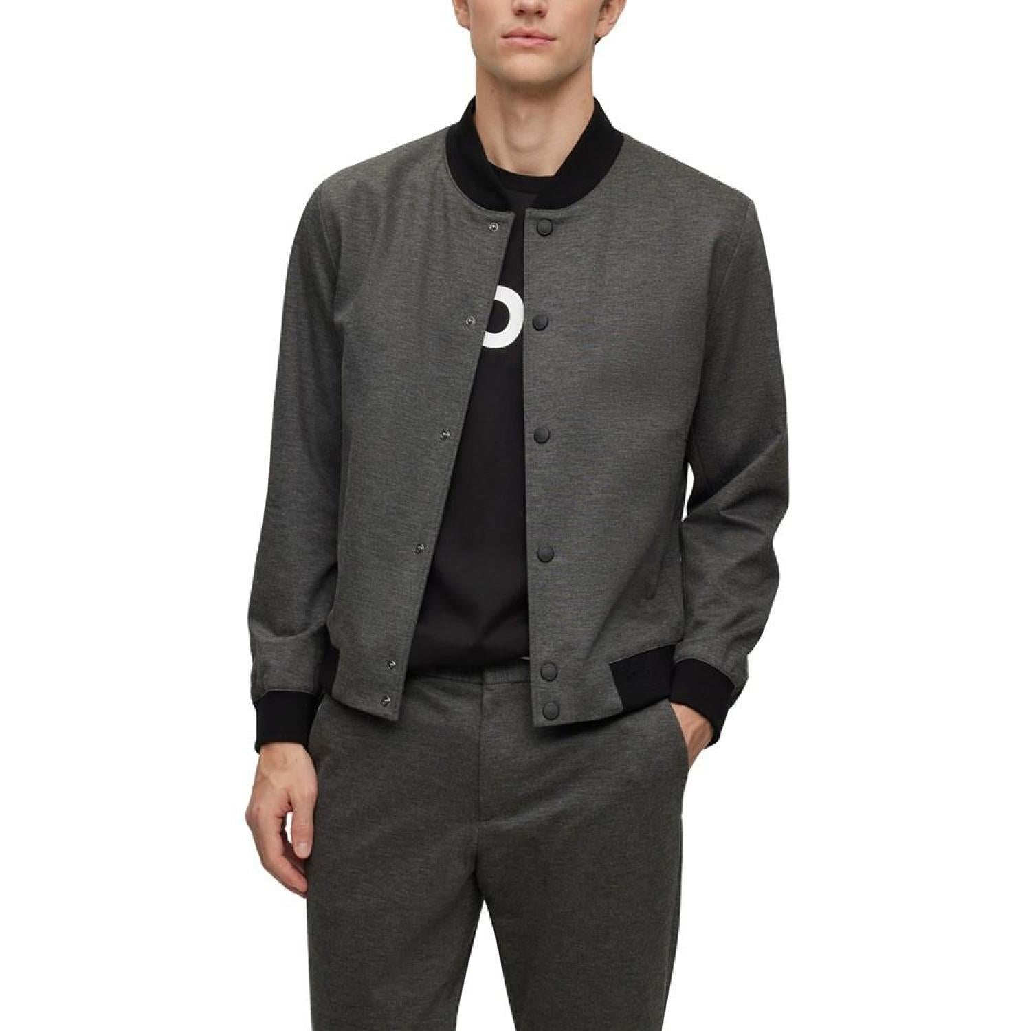A slim-fitting jacket in melange jersey with stretch by BOSS menswear, trimmed with stretch-cotton ribbing and branded poppers. The model is a size 32R and is 6'2" tall with a, 38" chest, 29" waist and 36" hips Slim fit Fastening top- Press-stud closure Flap chest pockets Fully lined Viscose, Polyamide, Elastane Machine Washable Imported