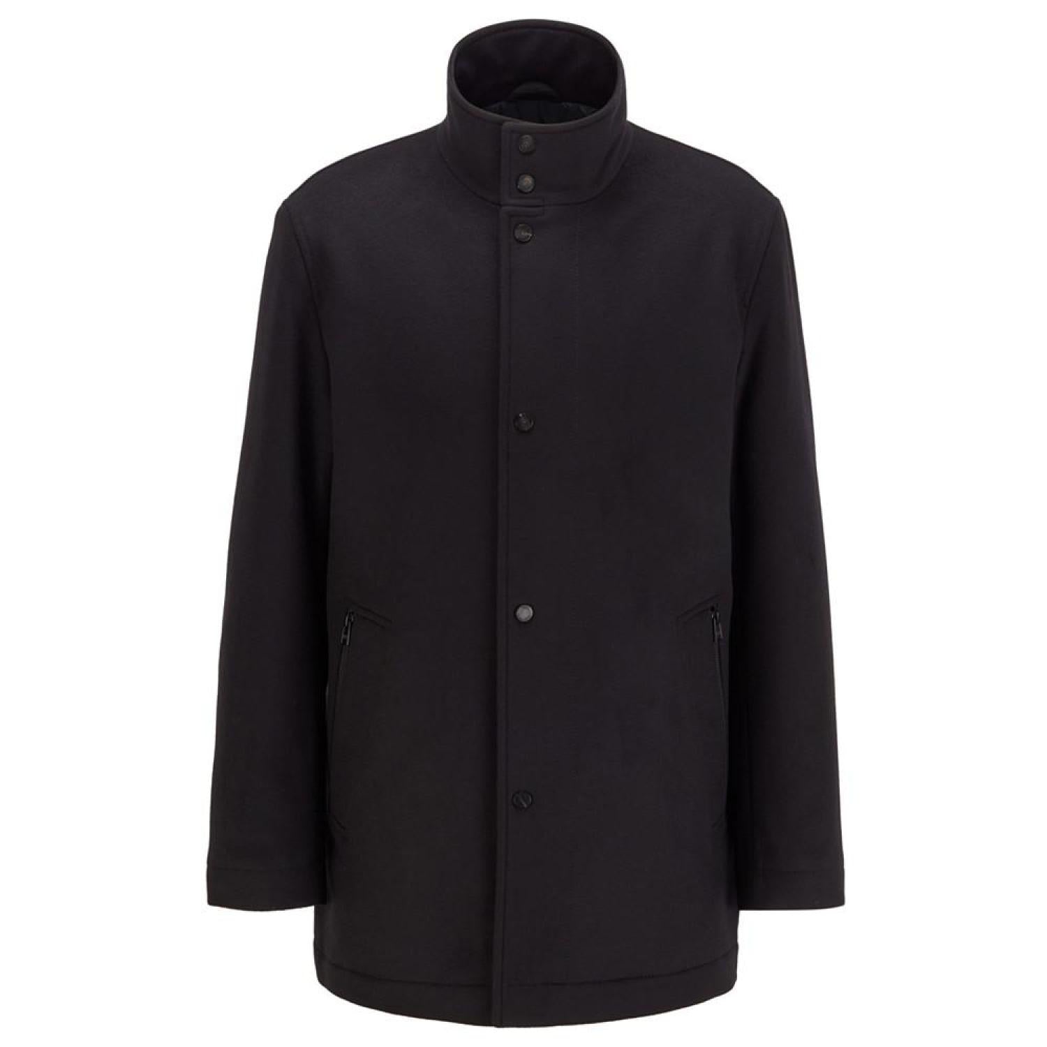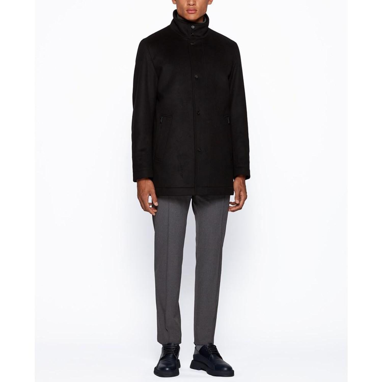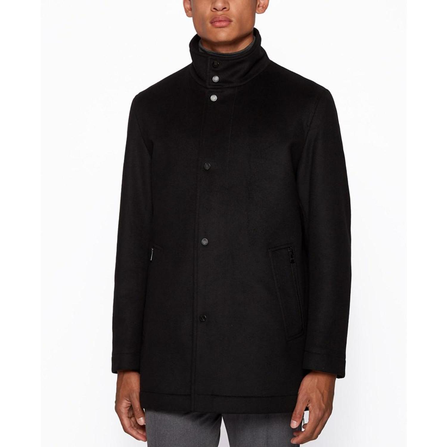 • An expertly crafted take on the car coat, by BOSS Menswear. This regular-fit coat is designed in wool-rich fabric with a felted finish and features zipped pockets and a funnel neckline. Understated branding is delivered through a logo badge at the rear collar.