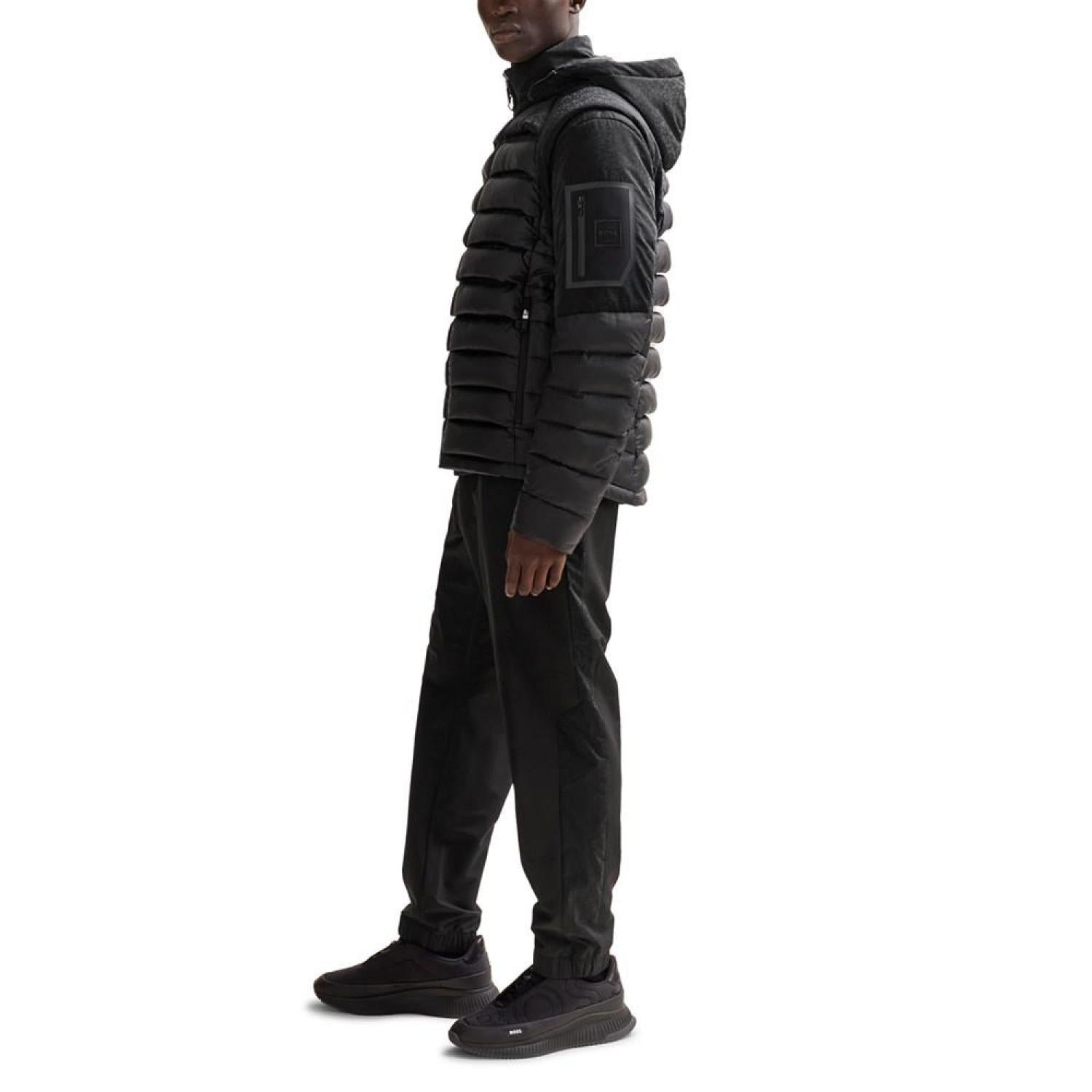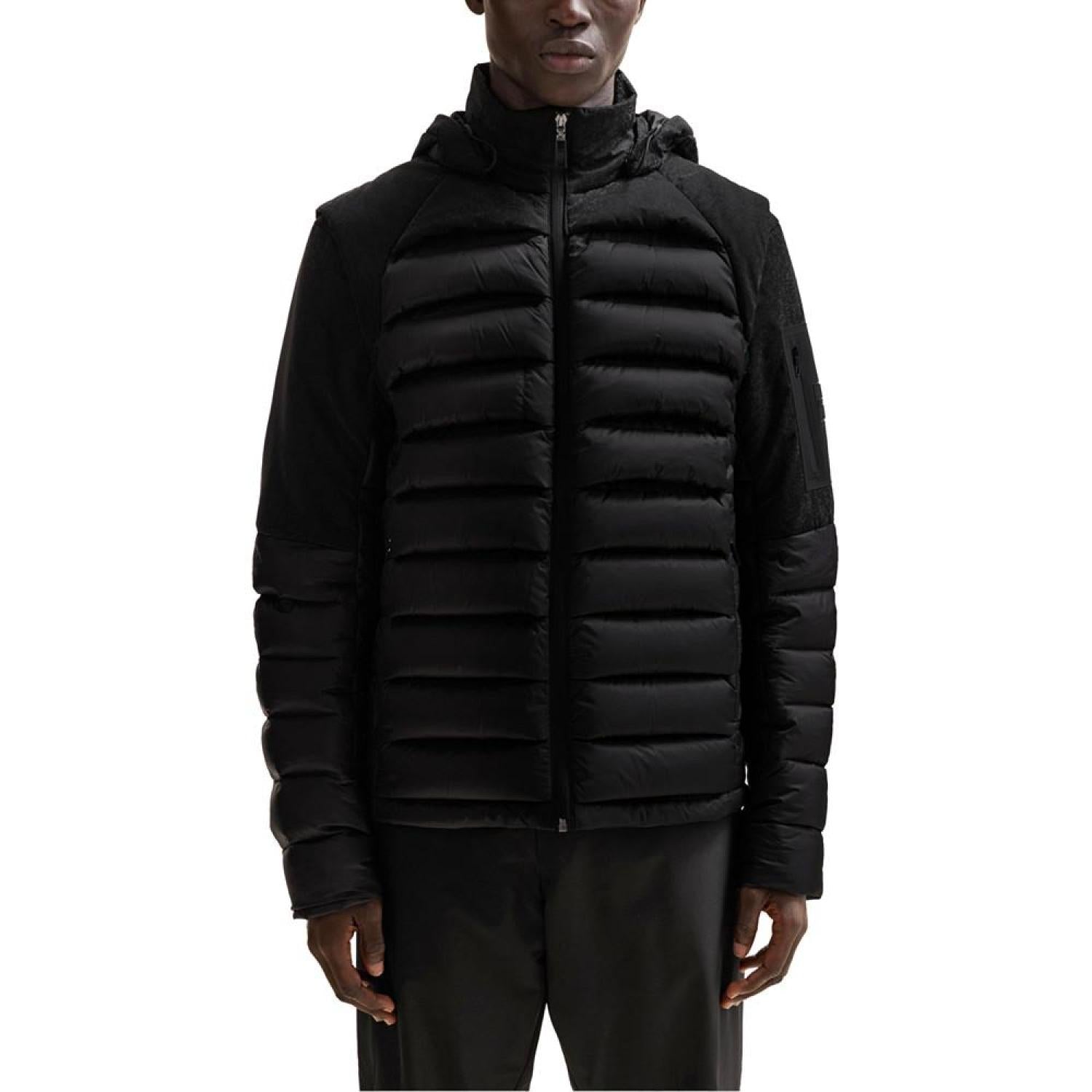 A modern jacket cut to a straight fit in water-repellent material with down and feather filling by BOSS Menswear. The model is a size 32R and is 6'2" tall with a, 38" chest, 29" waist and 36" hips Regular fit Fastening top- Zip closure Pockets top- Zip pockets Fully lined Fit back length- 28" Polyamide, Filling- Down, Filling- Duck Feather Machine Washable Imported