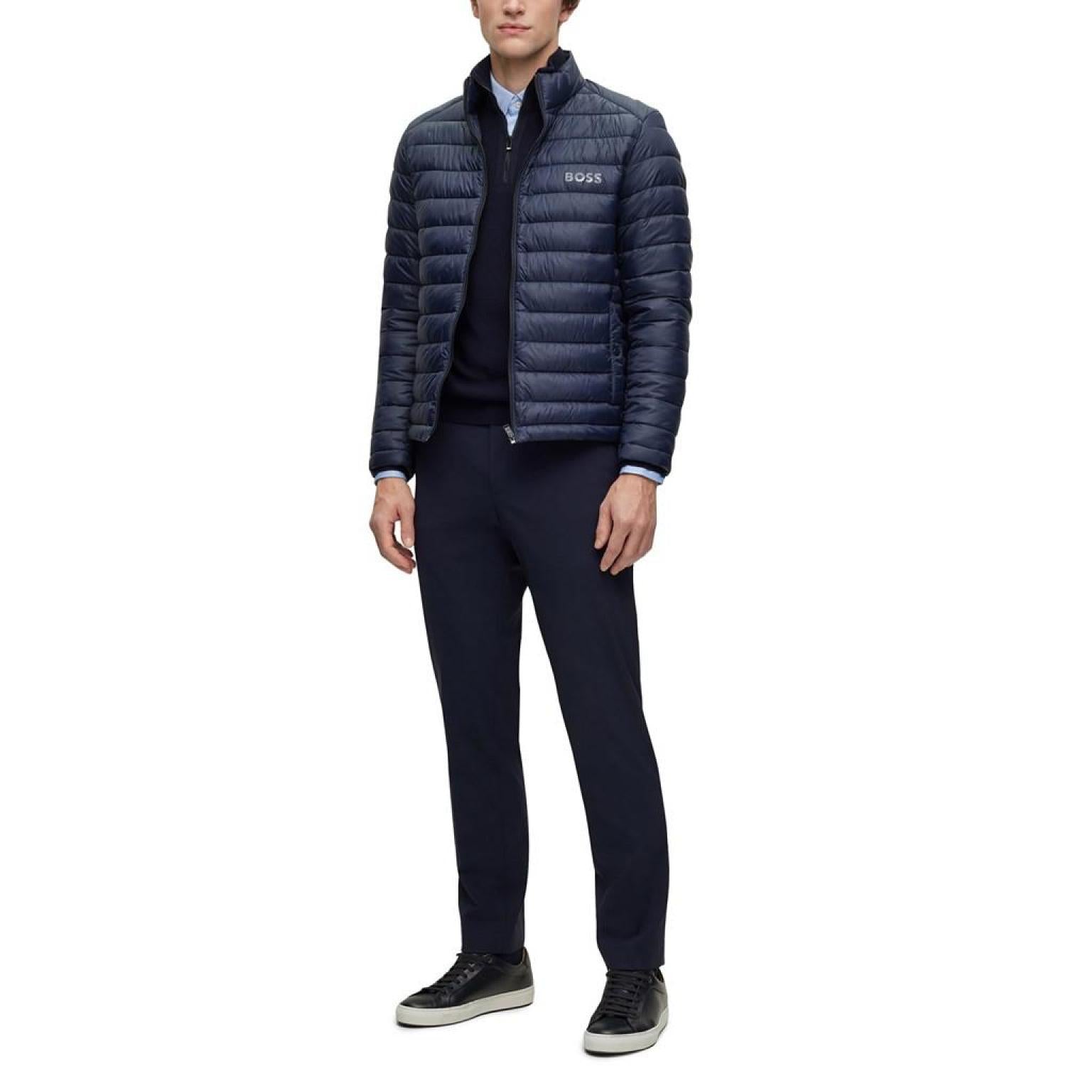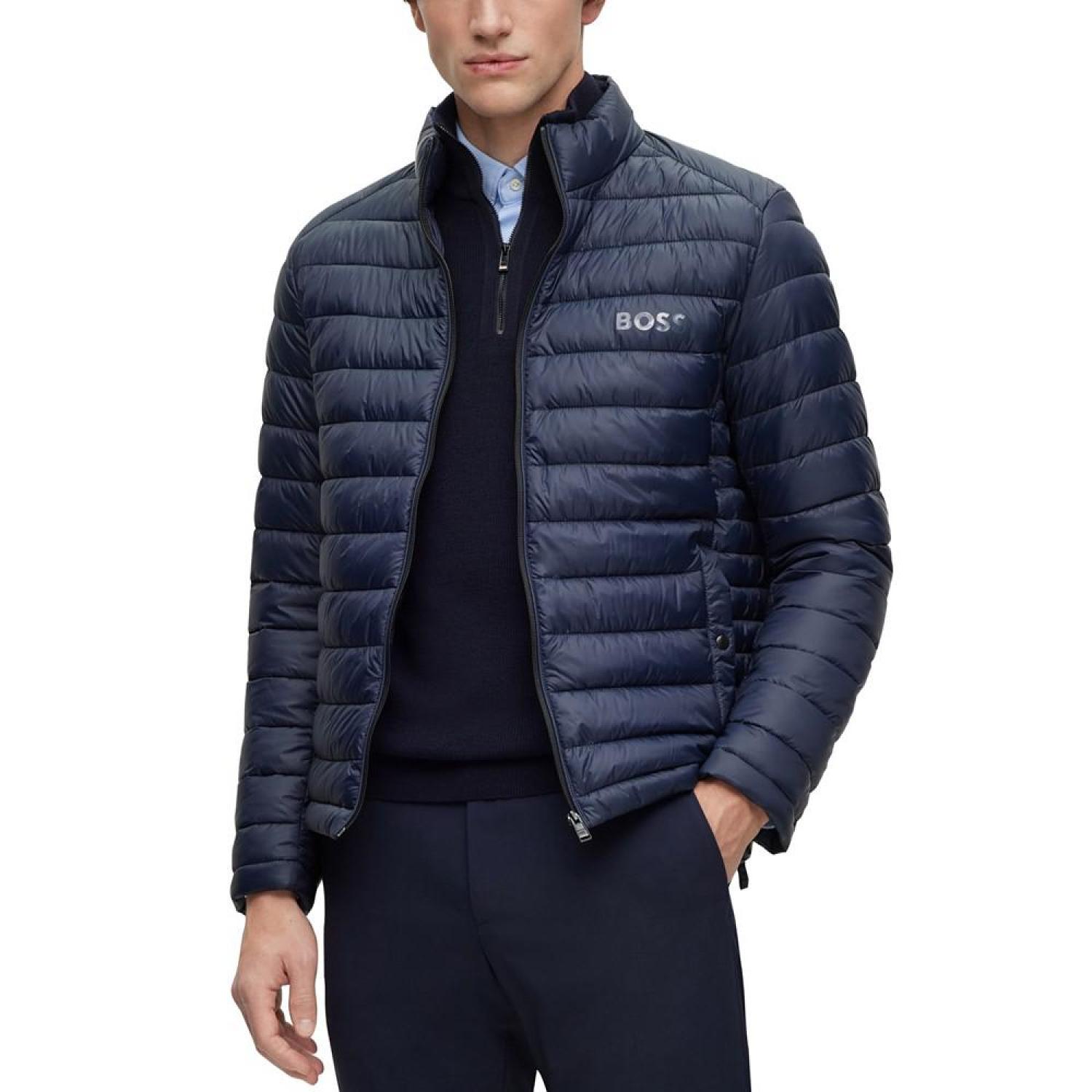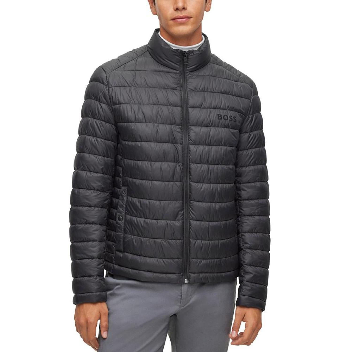 A modern jacket cut to a straight fit by BOSS Menswear. Fully lined and wadded with lightweight padding, this jacket zips through to a stand collar and is treated with a water-repellent finish for reliable protection. The left chest is detailed with a subtle BOSS logo in a tonal effect. The model is a size 32R and is 6'2" tall with a, 38" chest, 29" waist and 36" hips Regular fit Stand collar Fastening top- zip and button closure Number of buttons- 4 or more buttons Pockets top- welt pockets Inside zip pockets Polyamide Machine Washable Imported